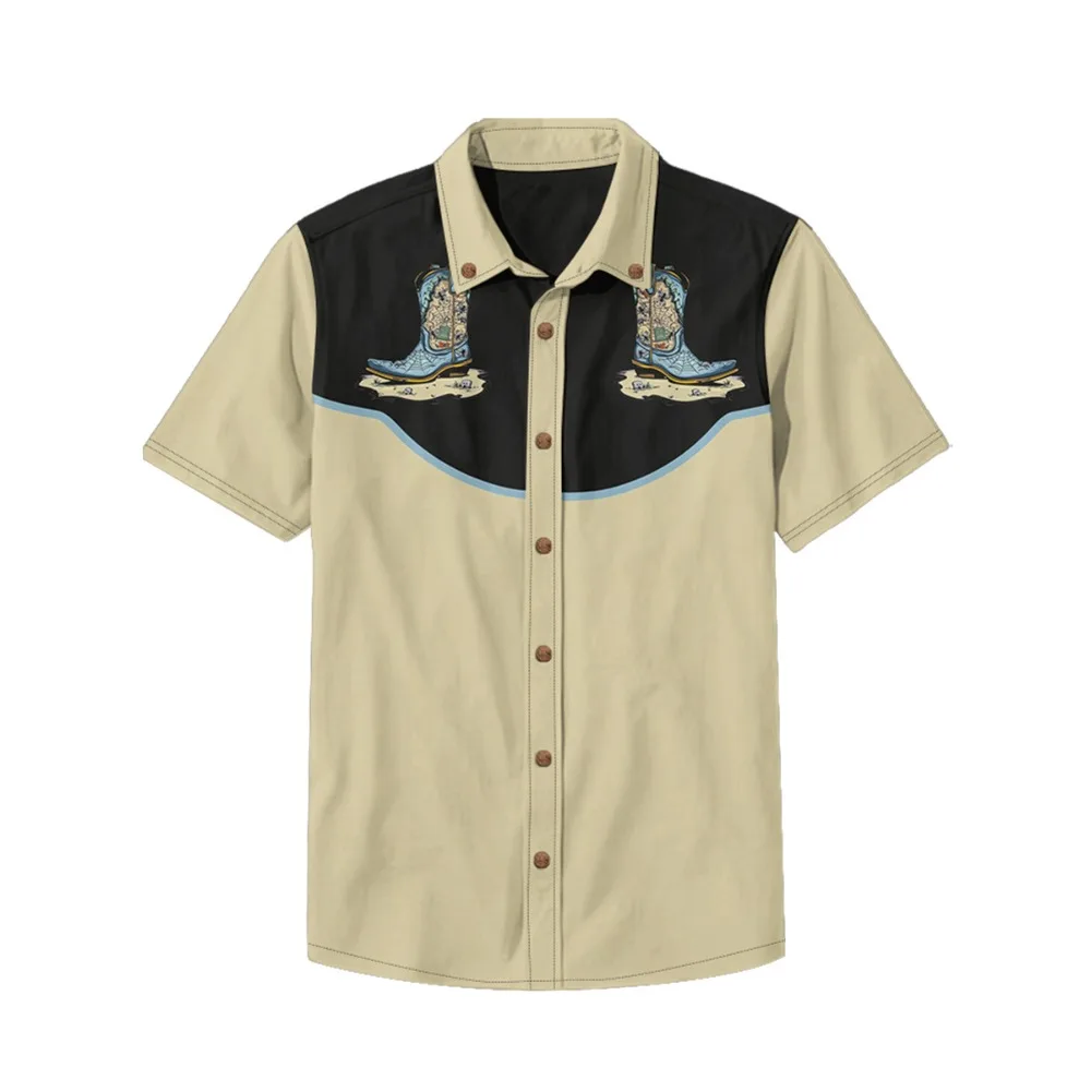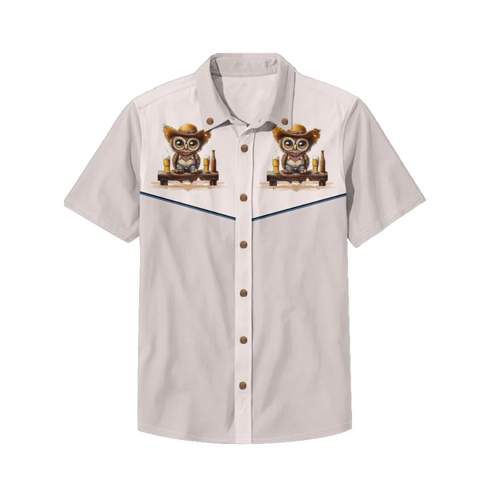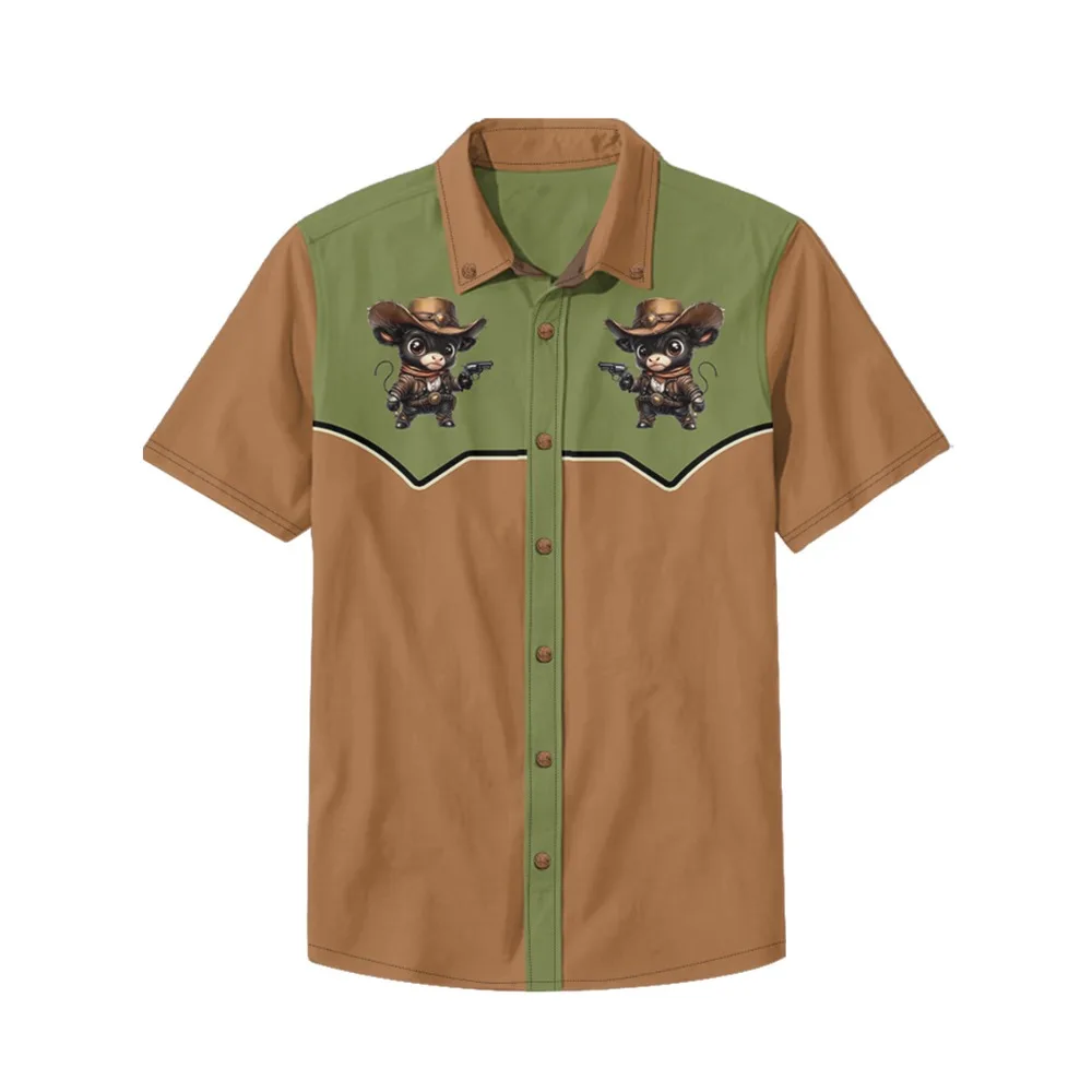 חולצות כותנה עם הדפס רקון מערבי רטרו לגברים, חולצת כפתורים קלאסית וינטאג' היפ הופ סטריטוור הראג'וקו, חולצות קיץ