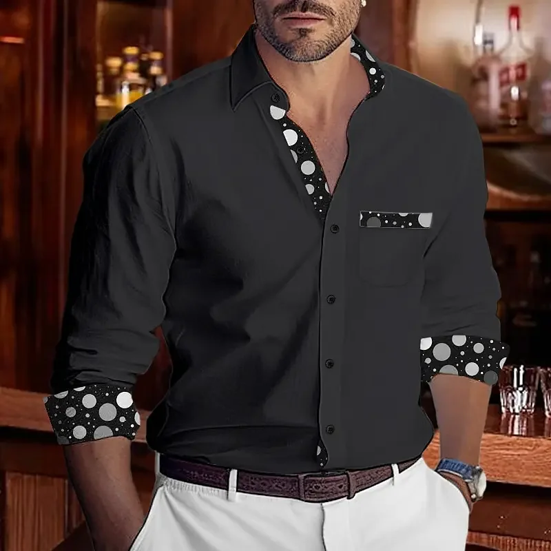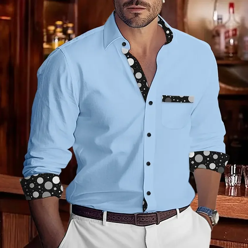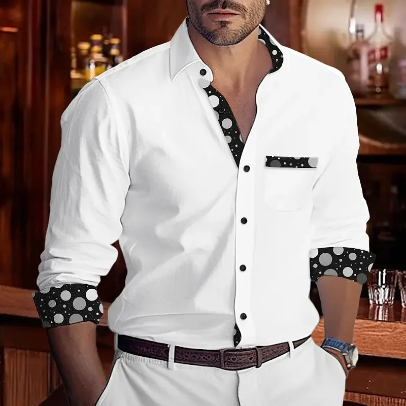 חולצות לגברים בסגנון קז'ואל ונוחות עם שרוולים ארוכים, נקודות פולקה בלוק צבעים, כיסויים יומיים ללבישה במקומות פנאי, חולצה מודרנית ונוחה