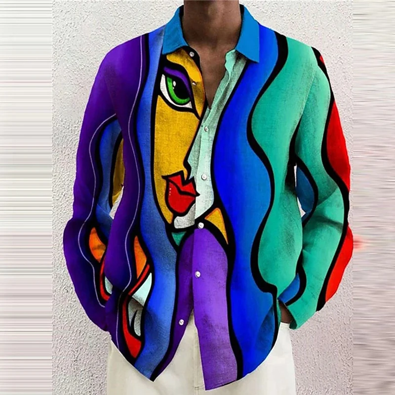 חולצות פנים אבסטרקטיות פורטרט 3D חולצות גברים נשים חולצת אופנה shouwaian שרוול ארוך חולצה חולצת וי בגדי עור נשים