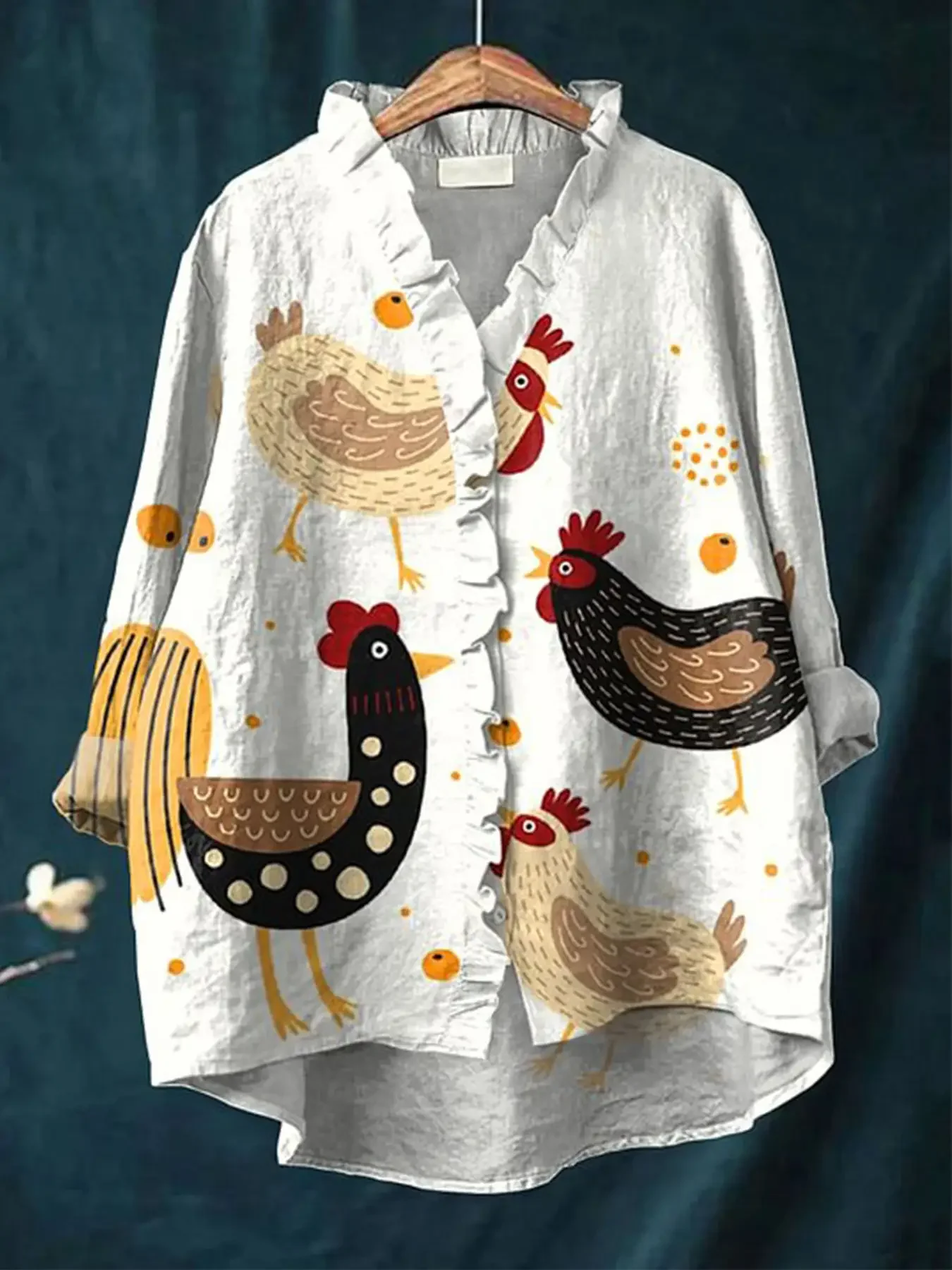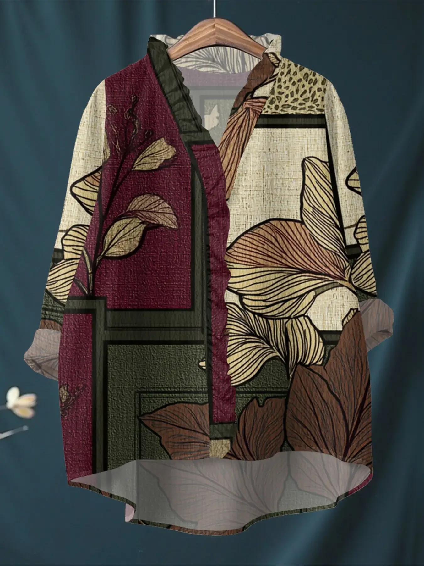 חולצת שרוול ארוך עם הדפס פרחוני חדש לנשים - מגע רך, גזרה רחבה, חולצות מודפסות
