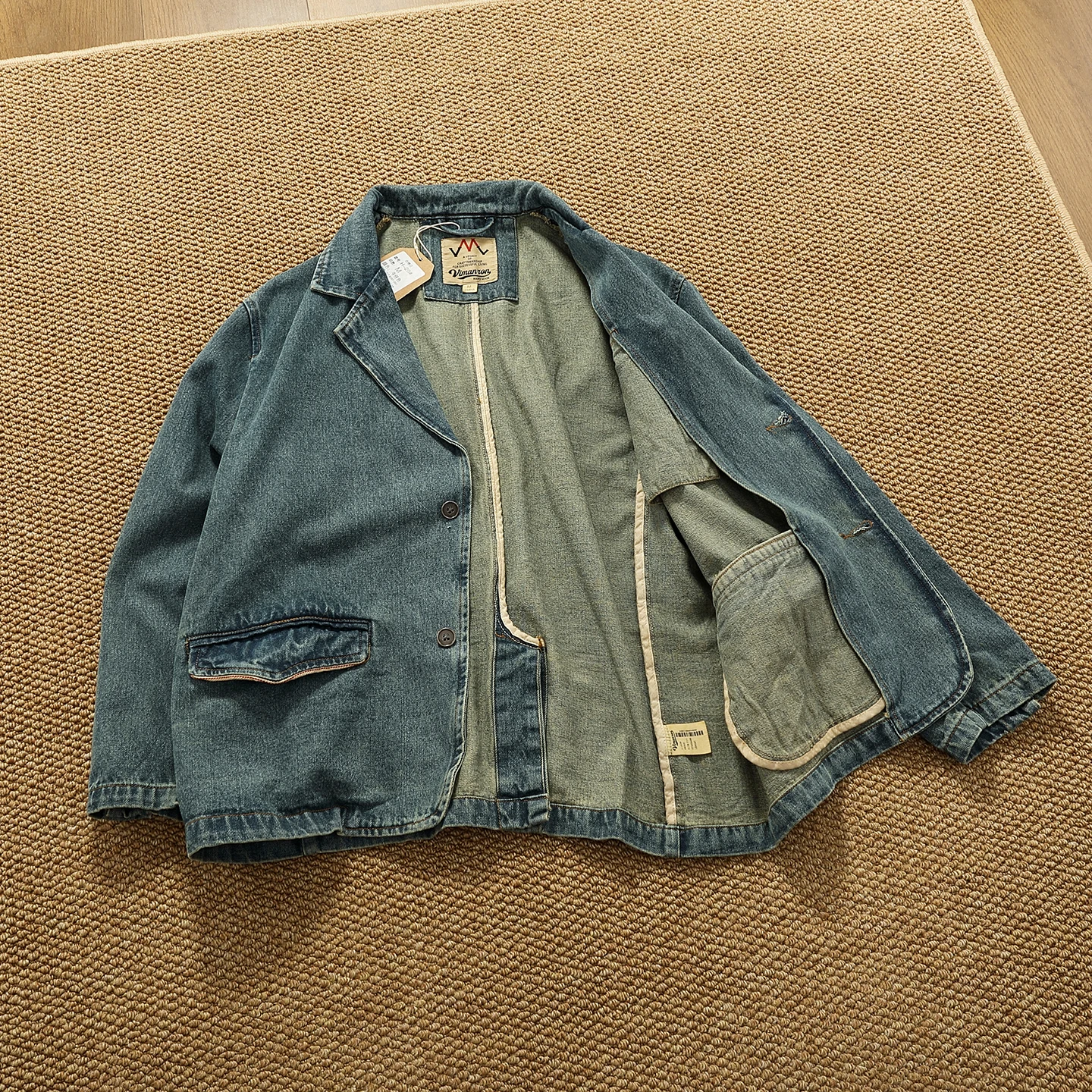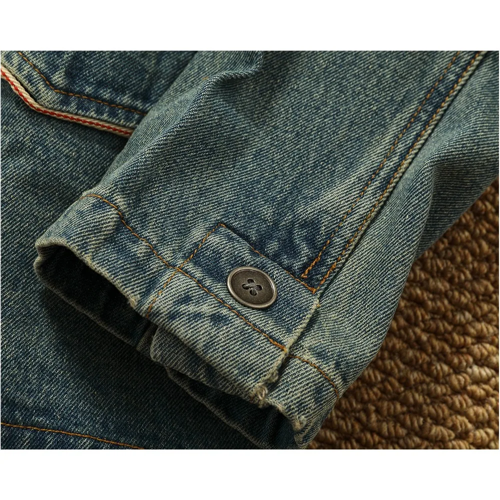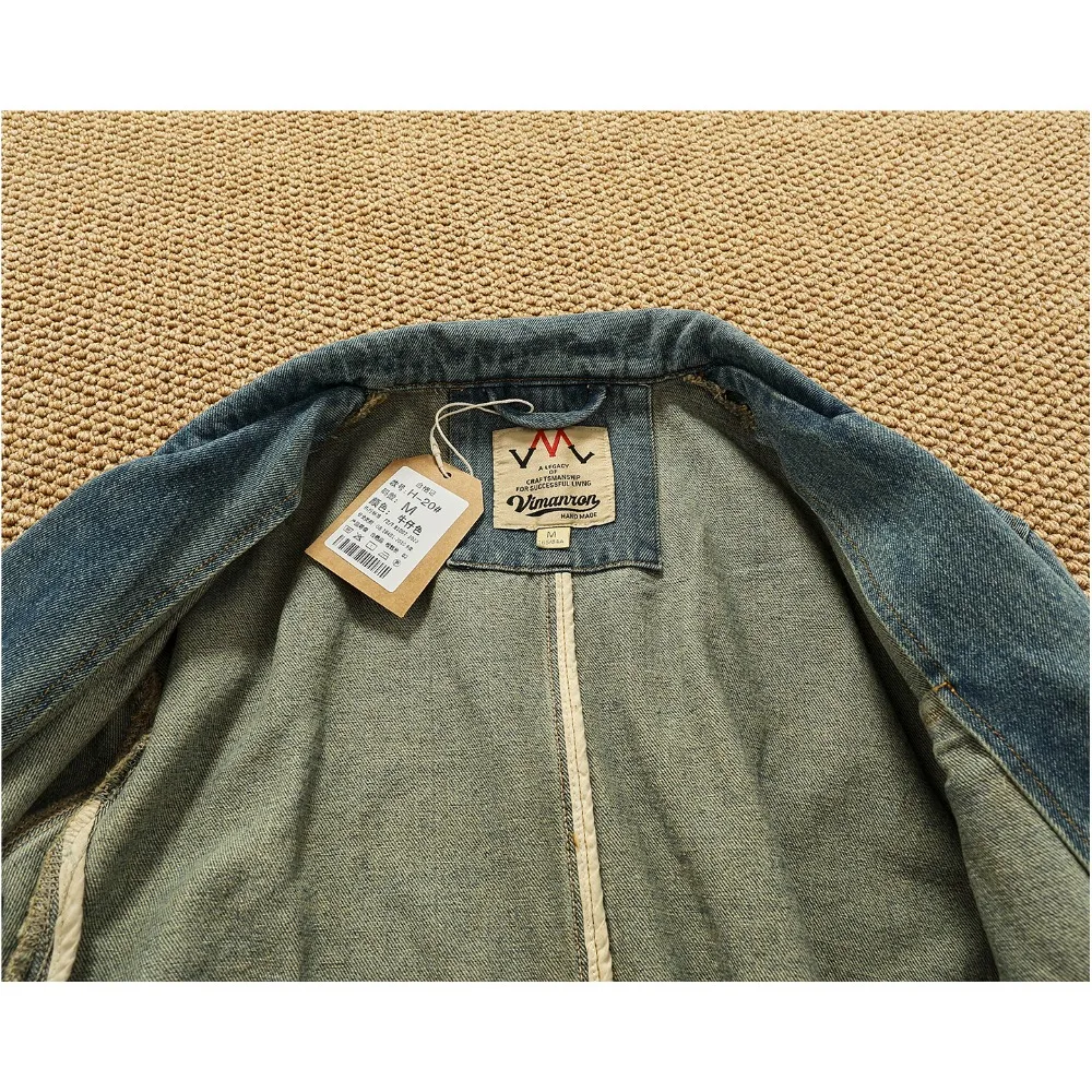 ג'קט ג'ינס ישן בסגנון רטרו עם כיסוי לפל, מתאים לעבודה ולשימוש יומיומי, מבד כותנה טהורה