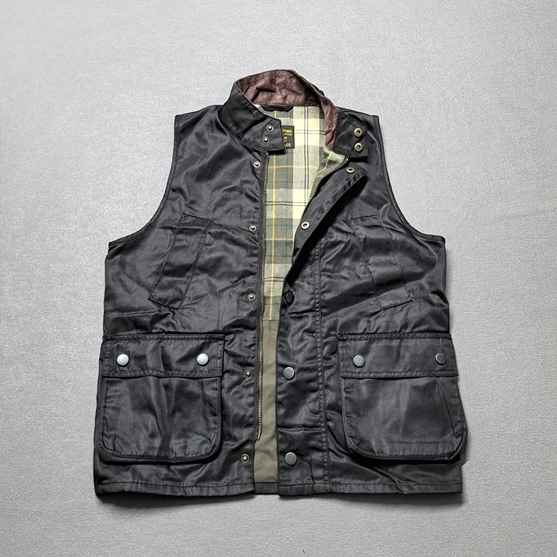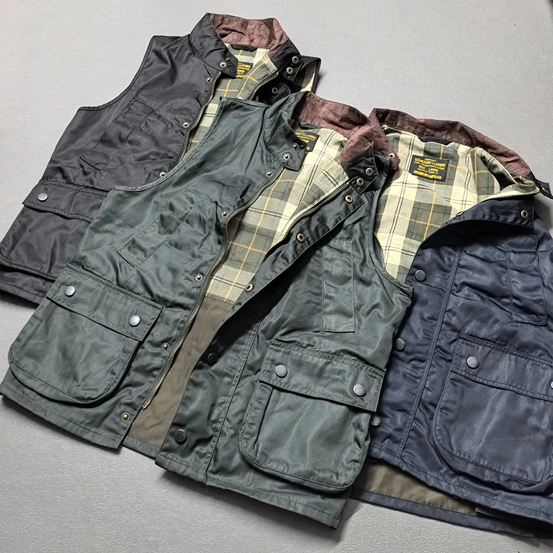 2026 סתיו חורף חדש אמריקאי רטרו ללא שרוולים וסט קארגו עם שמן ווקס לגברים עם כיסים מרובים קואט משקל כבד עמיד למים