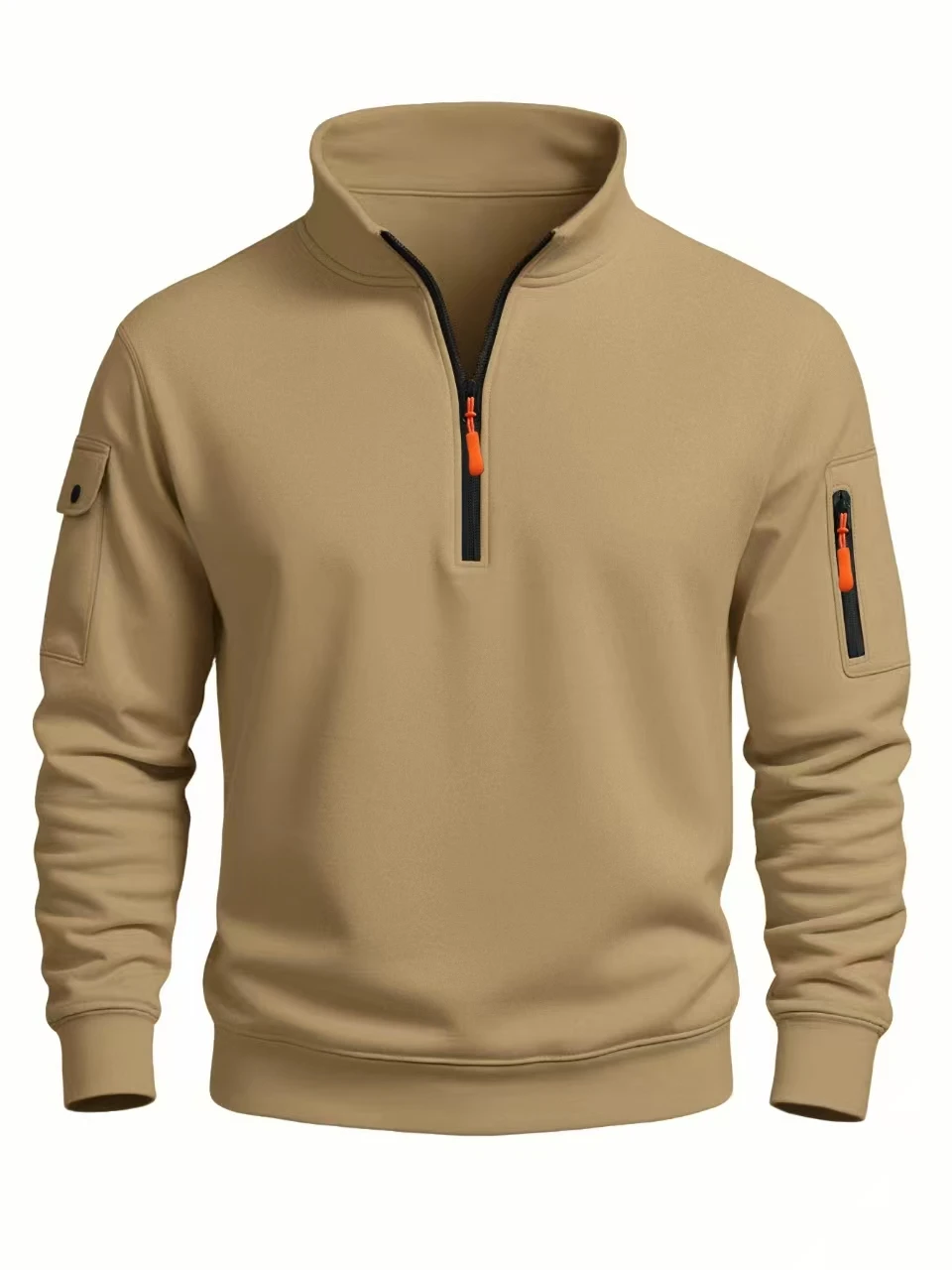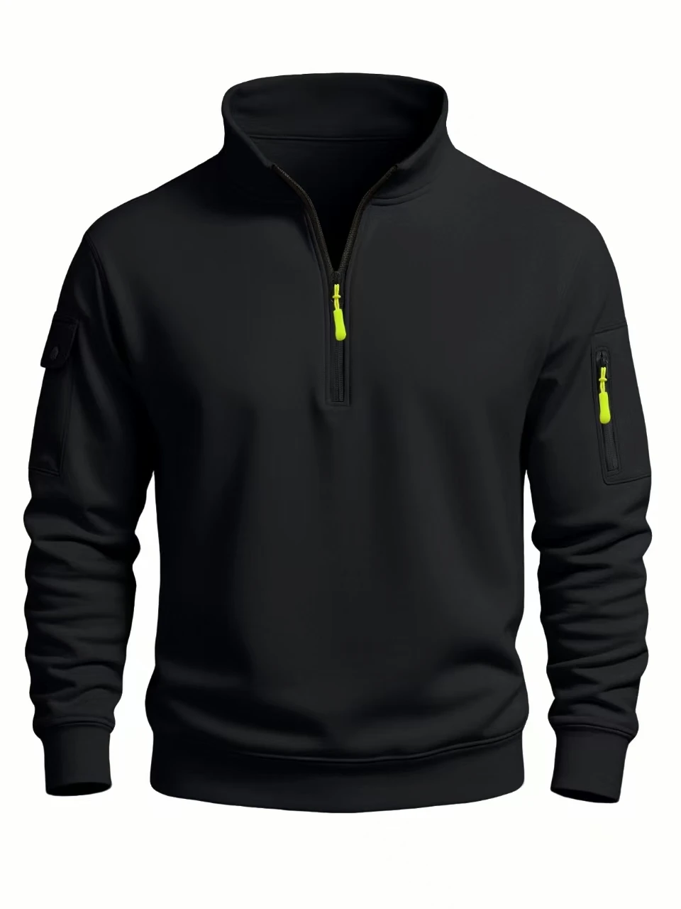 סווטשירט לגברים סתיו וחורף 2025 חדש ספורטיבי רגיל עם שרוולים ארוכים, צוואר גבוה, רוכסן חצי, חולצה עמידה ברוח