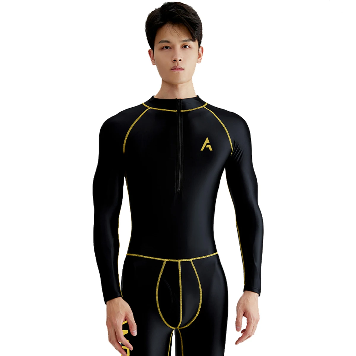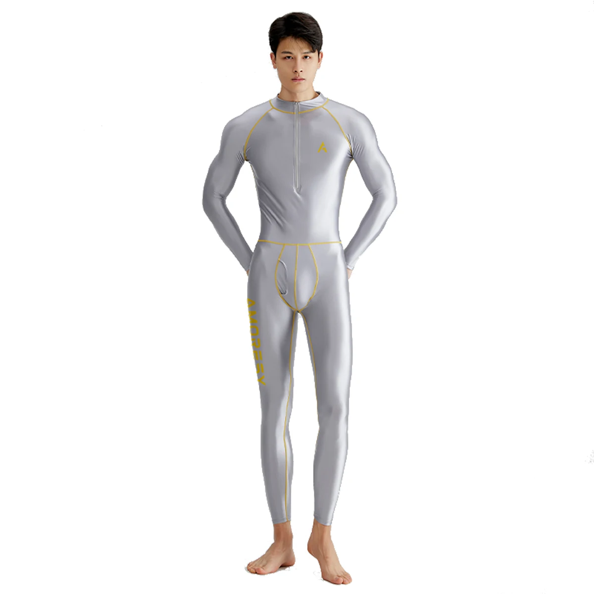 סדרת אפולו של AMORESY לגברים, חליפת סאטן אלסטית עם רוכסן קדמי לגלישה, צלילה, שחייה, חדר כושר, טרקסוט, סווטשירט, פלייסוט