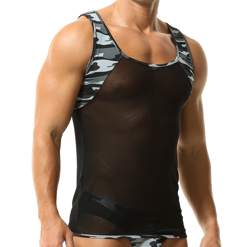 גופיות גברים עם הדפס הסוואה, גופיות רשת אלסטיות ונושמות, גופיות כושר, סווטשירט קז'ואל