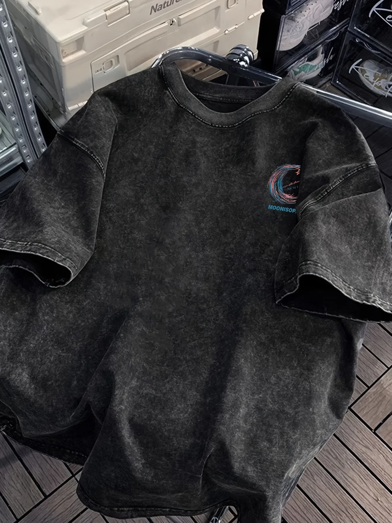 חולצת טריקו לגברים 100% כותנה שטופה בקיץ בד רך ונוח הדפס דפוס ירח מתאים ללבוש יומיומי פריט אופנתי