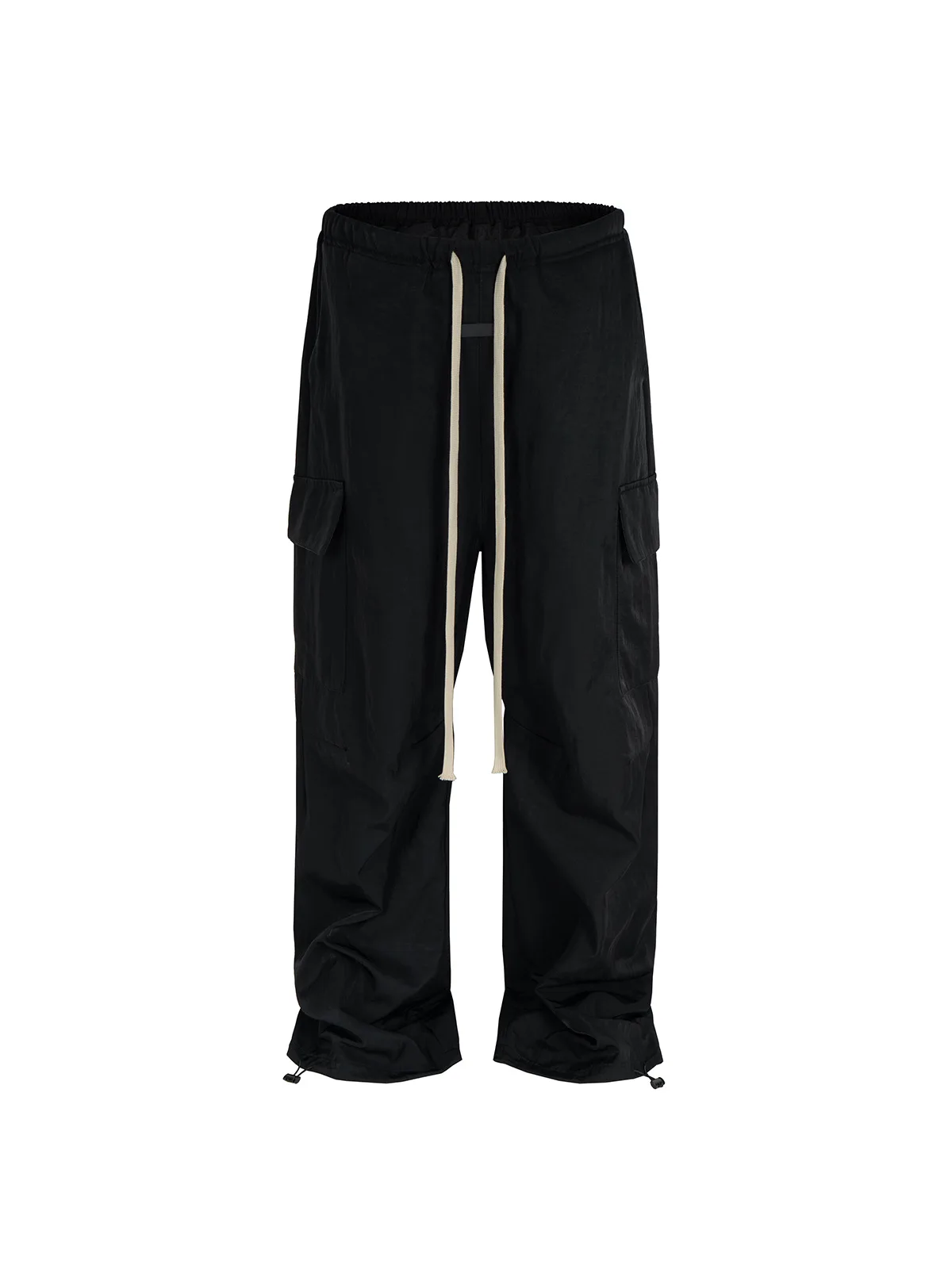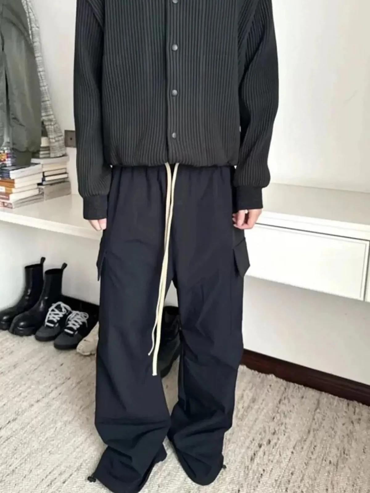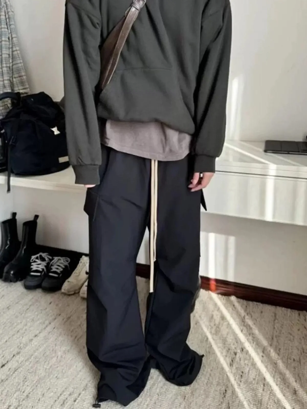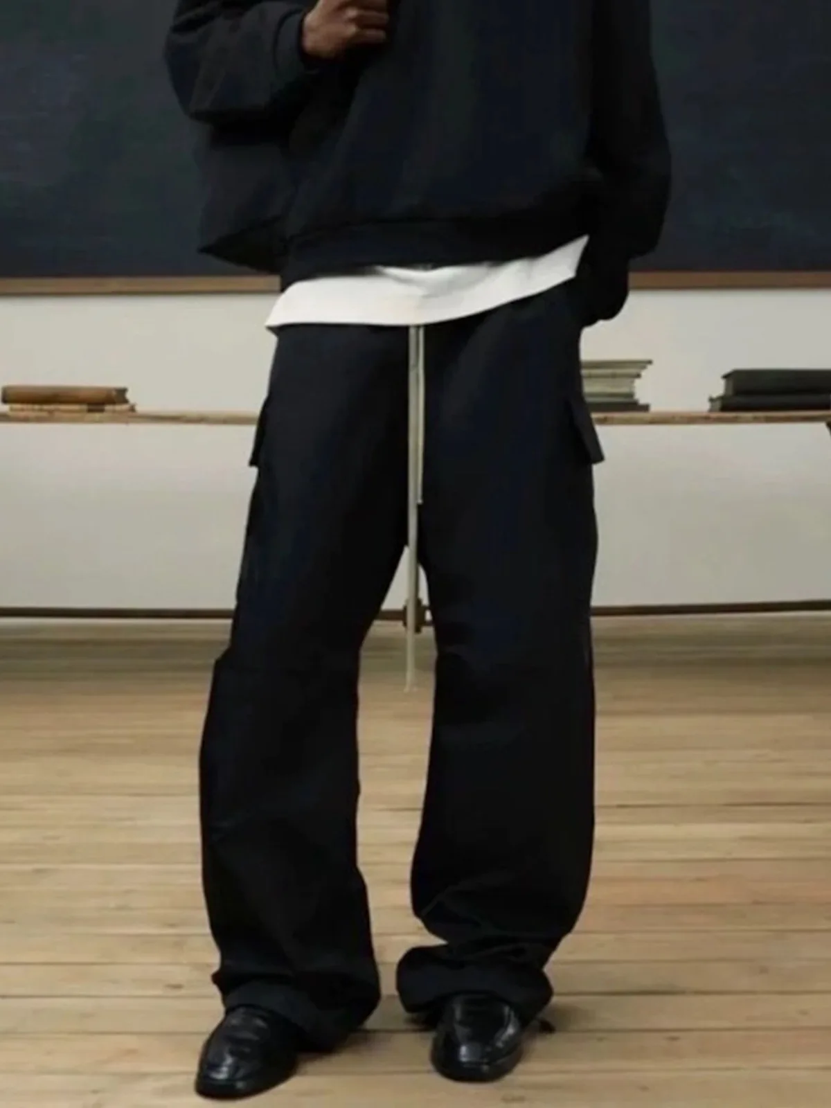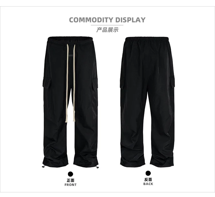 מכנסיים שחורים לרחוב הגבוה MIJKO עם רגל ישרה, מכנסיים קז'ואל עם חגורת מותן, בגדי רחוב נוחים