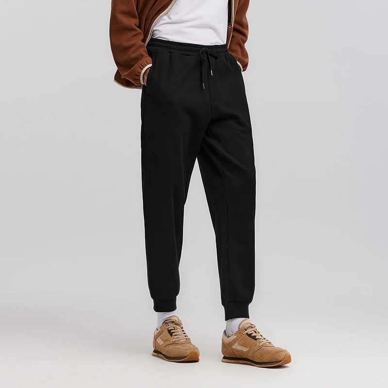 מכנסי סווטשירט לגברים בגזרה רחבה ומחמיאה, בצבע אחיד עם חגורת מותן בסיסית להגברת הגובה, מתאימים לשימוש יומיומי וארוכים