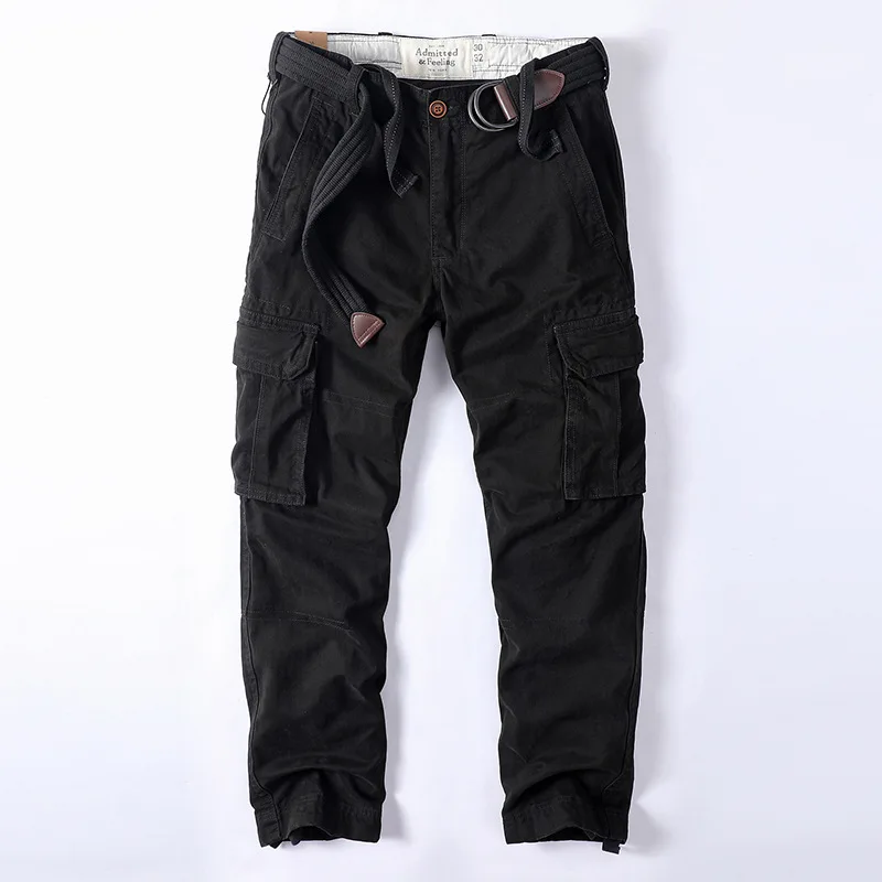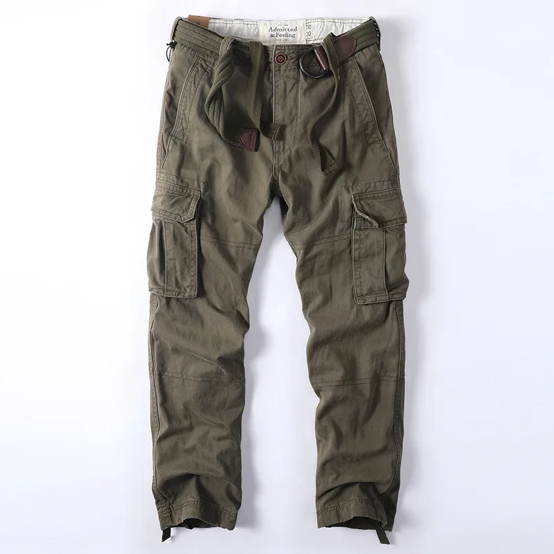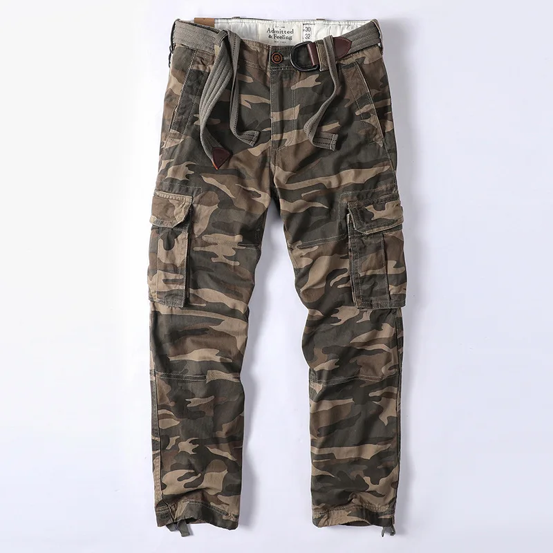 מכנסי עבודה אמריקאיים רטרו מכותנה לגברים, מכנסי עבודה קז'ואל עם הדפס הסוואה, מרובי כיסים, גזרה ישרה ורחבה