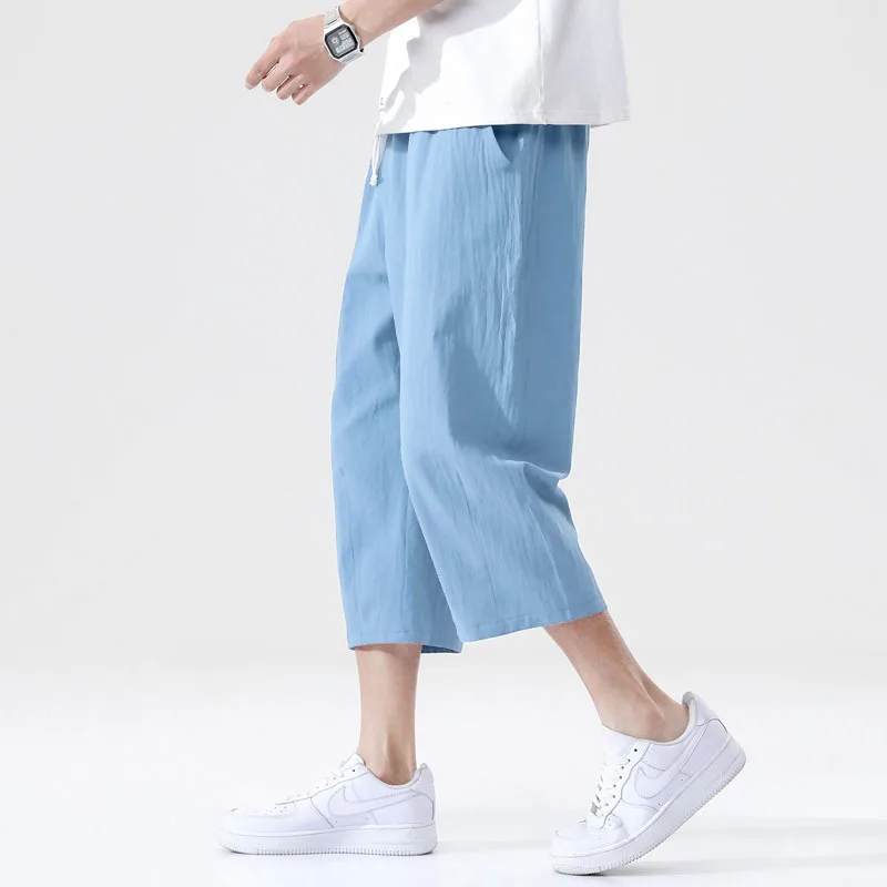 מכנסי פשתן קז'ואל לקיץ חדשים בצבע אחיד רגל ישרה לגברים קלים גדולים בצבע אחיד מימוש פשתן קצר