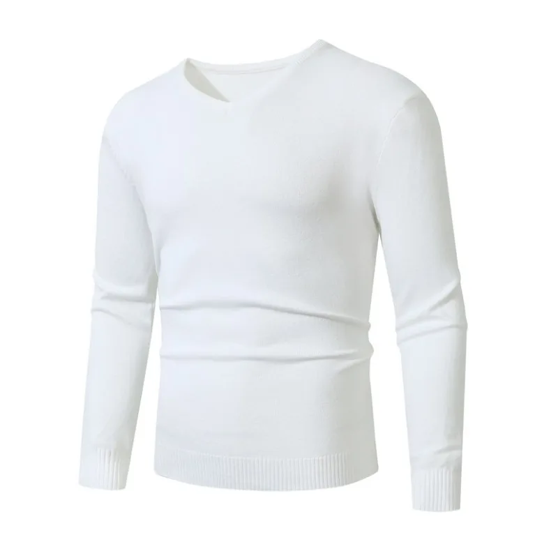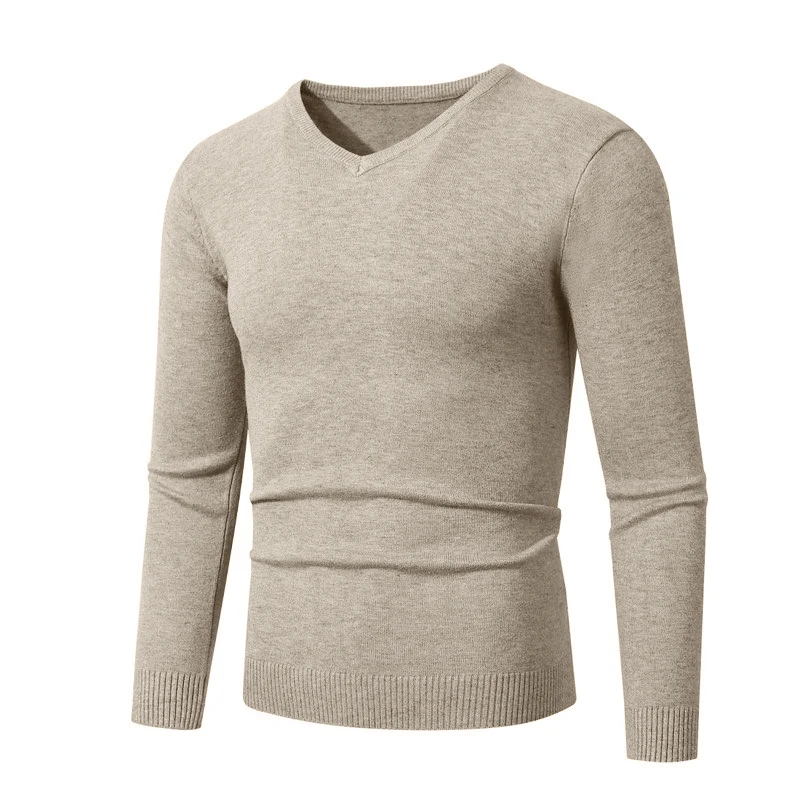 סוודר עסקי קל משקל עם שרוולים ארוכים וצווארון V לגברים בצבע אחיד