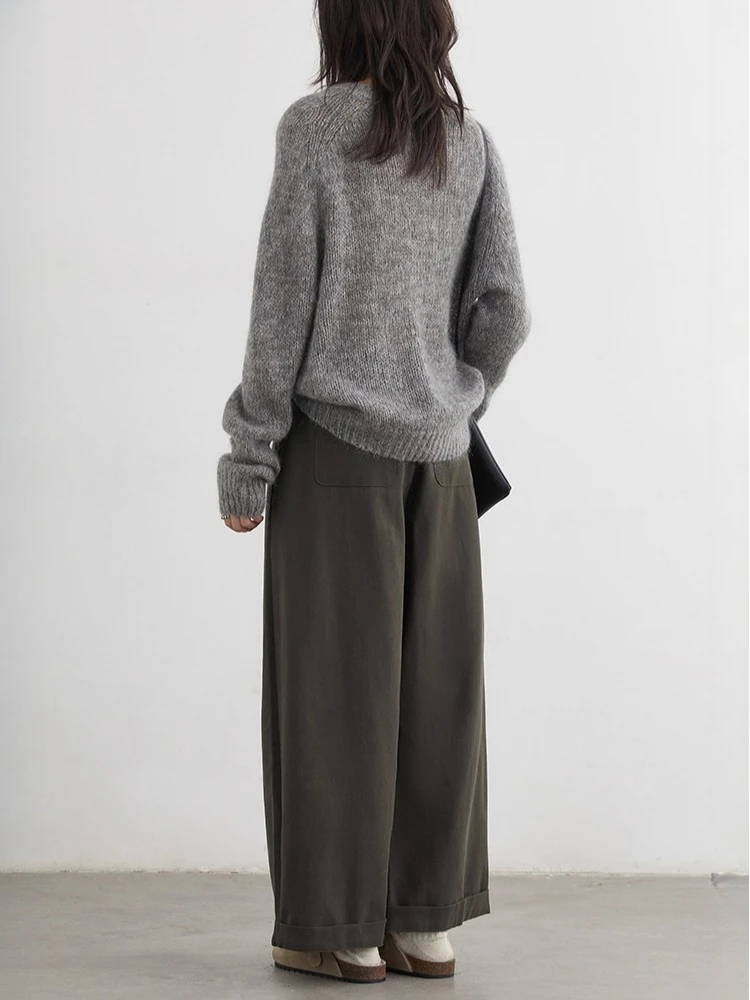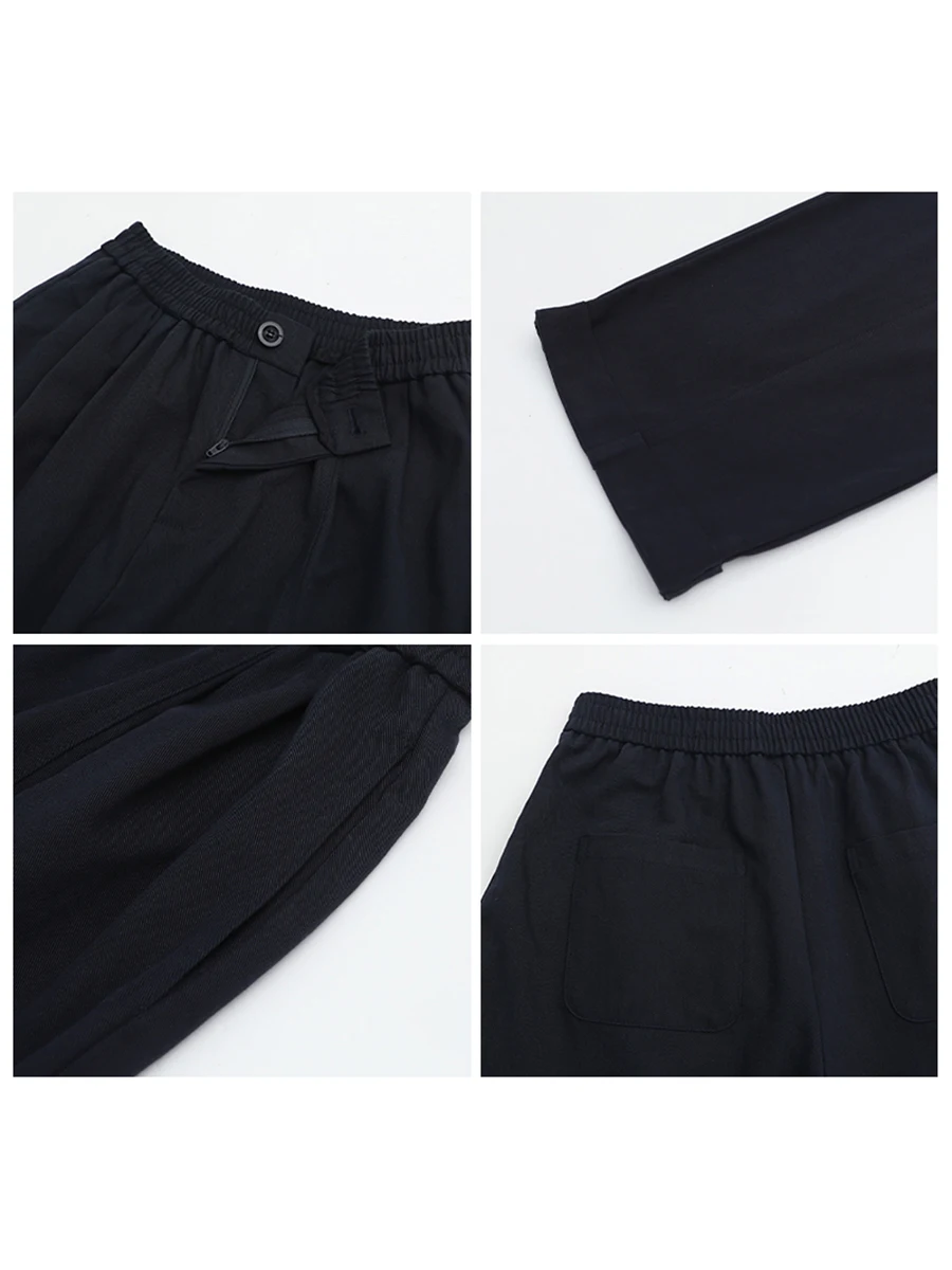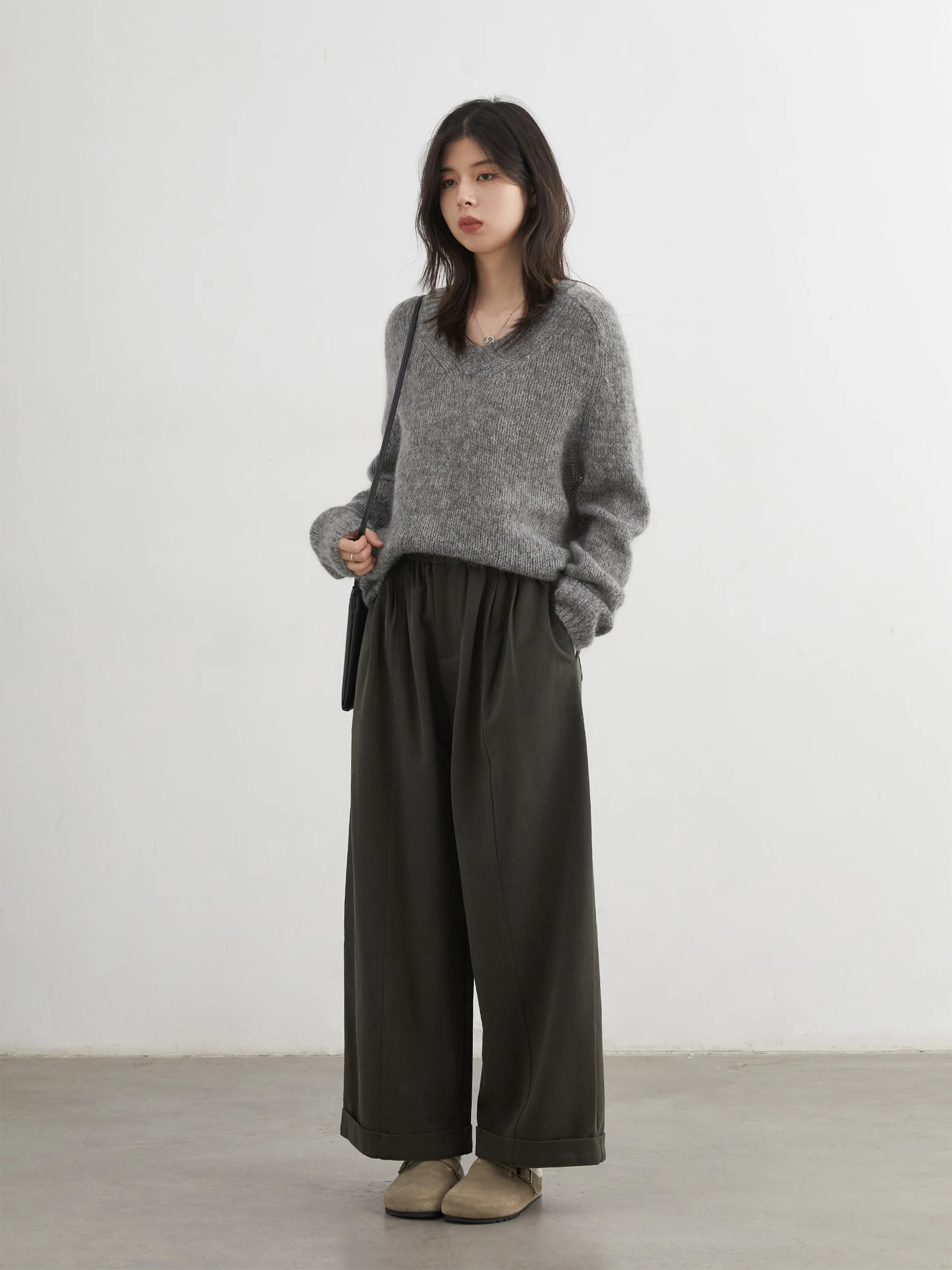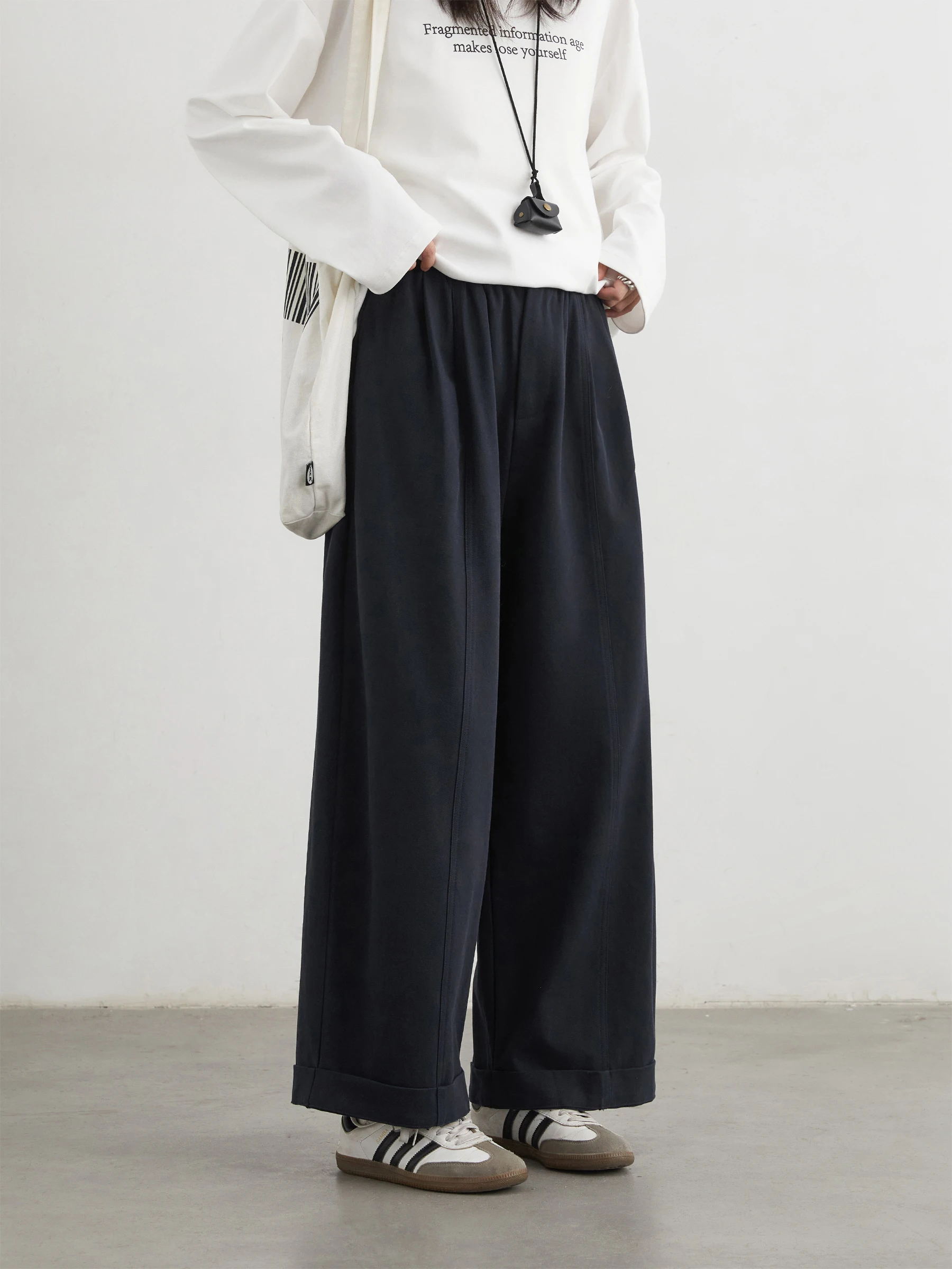 מכנסיים נשים CHIC VEN במותן גבוהה, רחבים ומתרחבים, מכנסיים נשיים קז'ואליים עם מותן גמיש, מכנסיים מתקפלים לסתיו חורף 2025