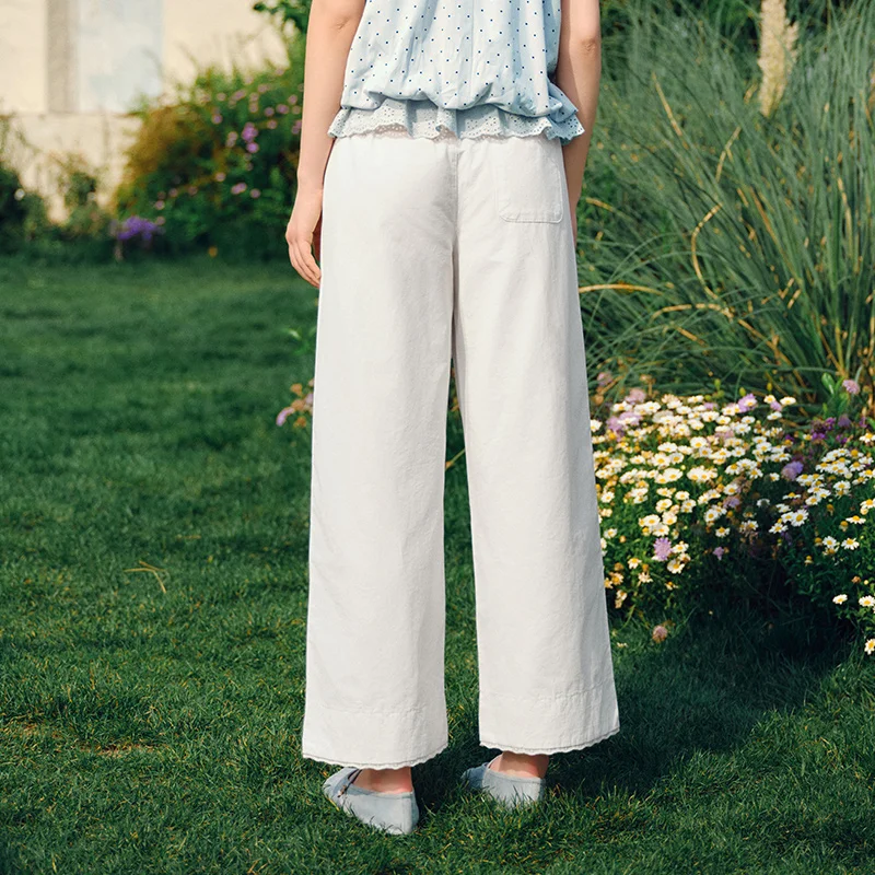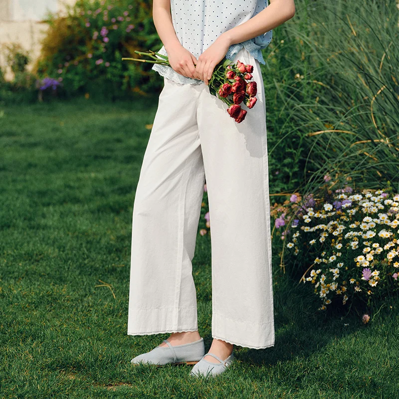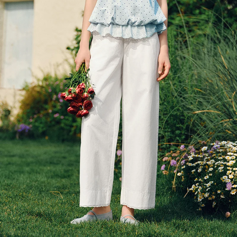 מכנסיים קז'ואל לנשים, מתרחבים, רחבים, פרטי תחרה מעוצבים, קיץ 2025, מכנסיים ארוכים מקוריים