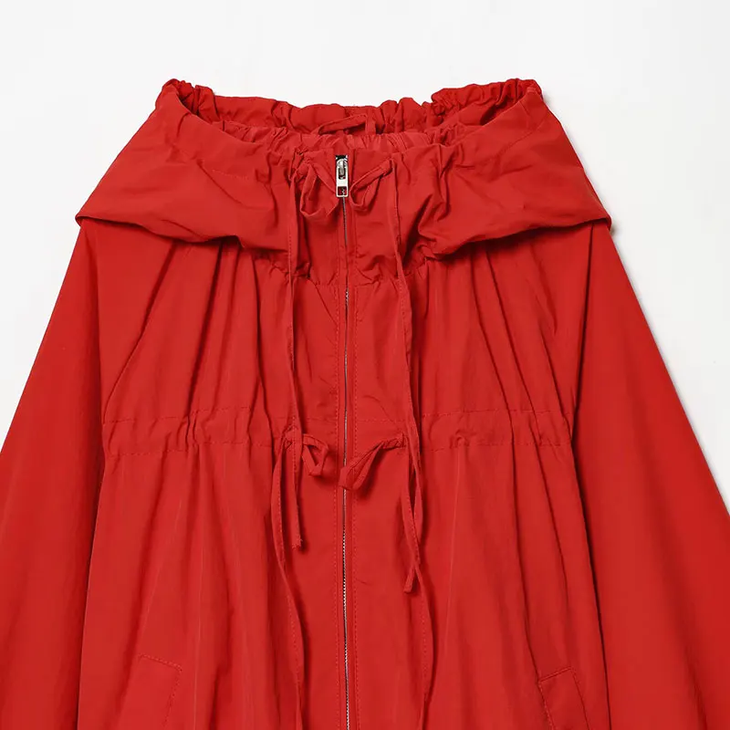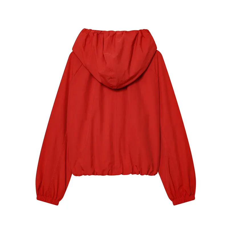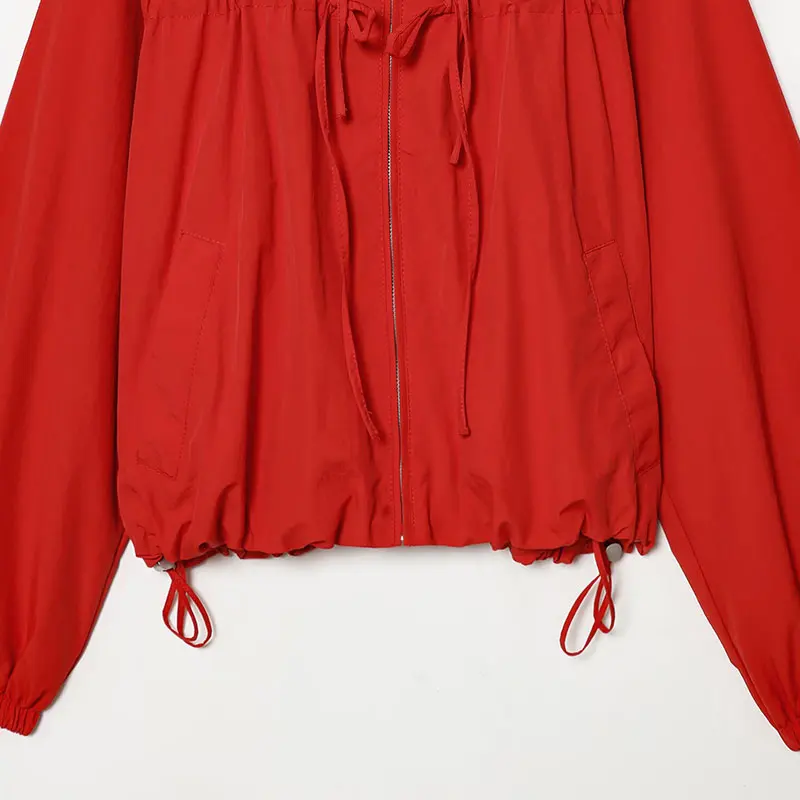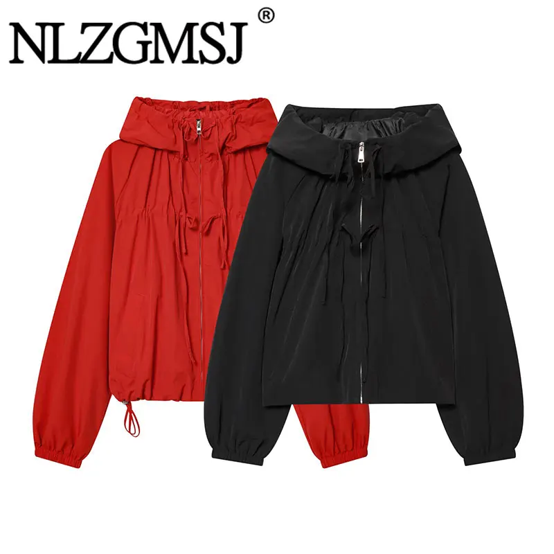 Nlzgmsj 2026 אביב קפוצ'ון קפוצ'ון אדום מעילים נשים שרוולים ארוכים רוכסן מעילים קצרים אופנה Y2K ילדה הלבשה עליונה