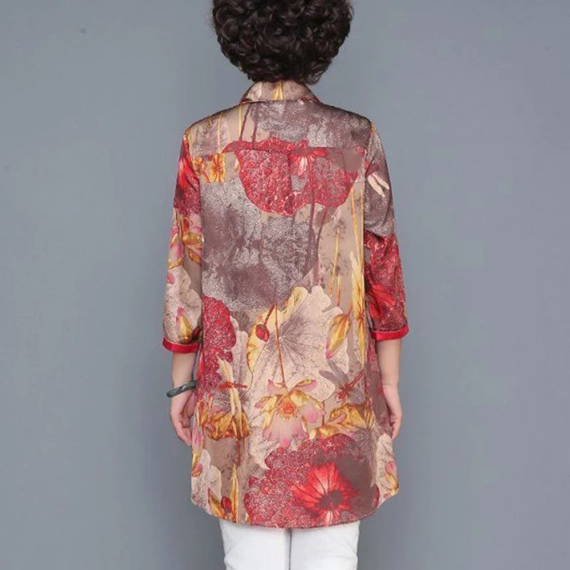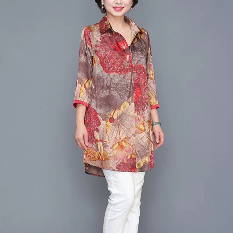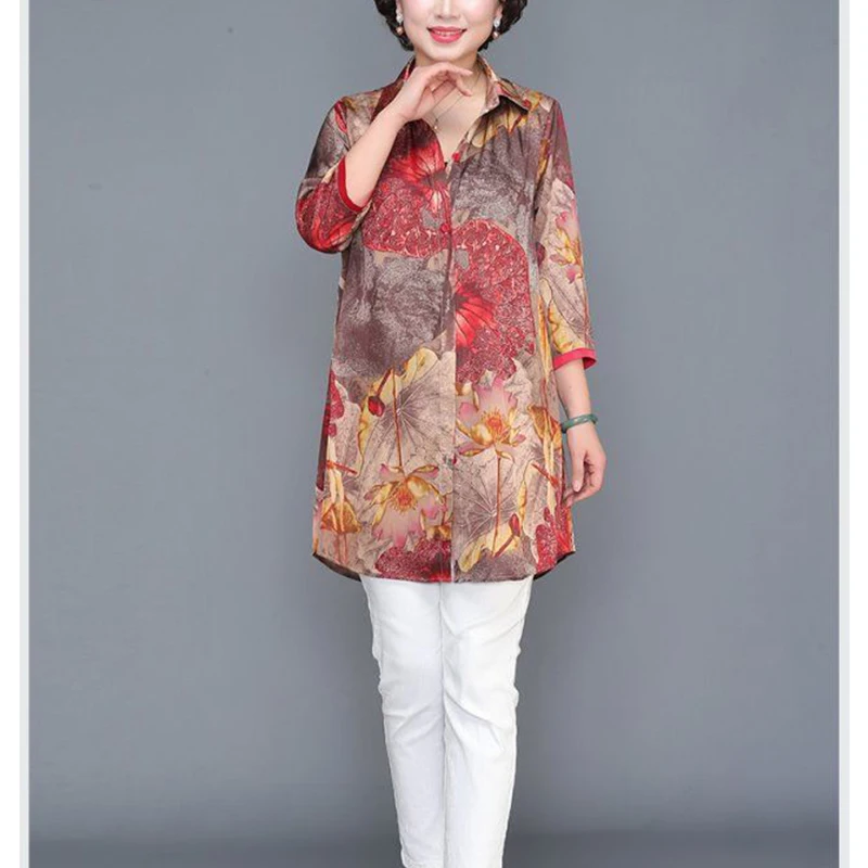 חולצת פולו-צוואר אופנה בקיץ חולצת הדפסה אלגנטית שרוול 3/4 נשים רופף חולצות קרדיגן נשים