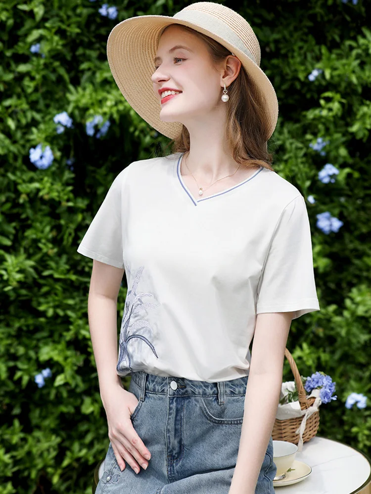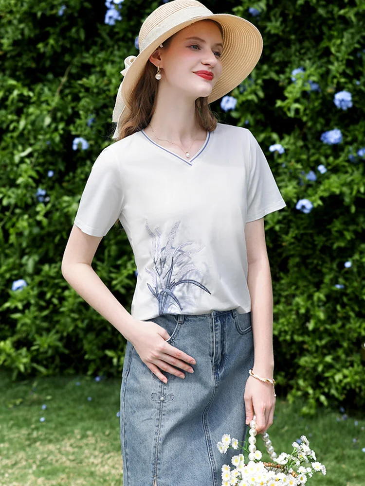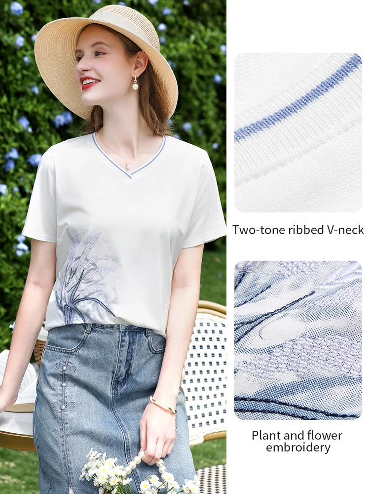 אני מאמין בך חולצת טי-שירט לבנה מודפסת עם רקמה בצורת V לנשים חולצה קז'ואלית לקיץ 2025 כותנה מגניבה עם שרוול קצר 2252016013