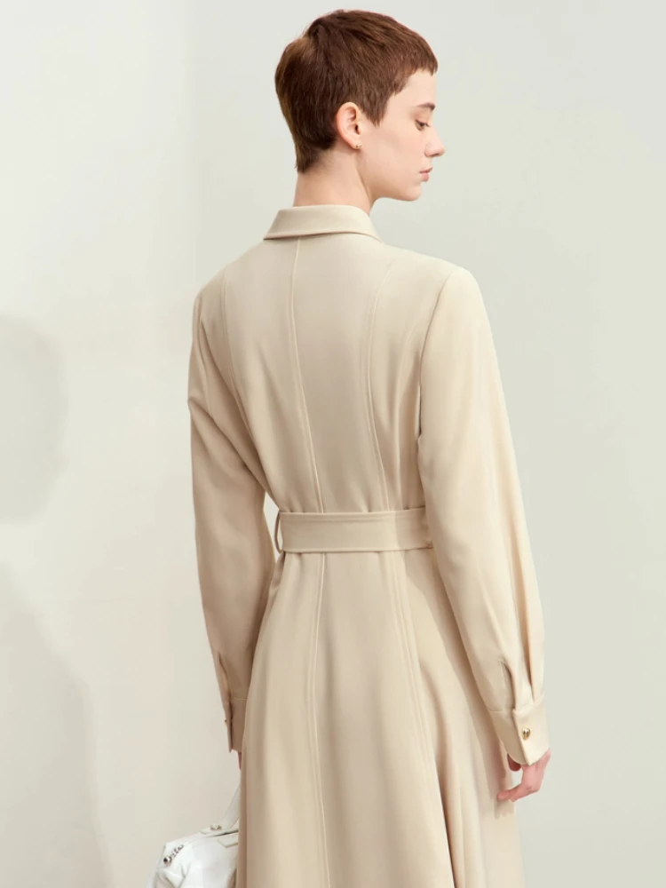 שמלות מינימליזם Amii עבור אישה 2025 סתיו חדש לפל עם חגורה שמלות מידי סלימ אופנתיות למשרד ליידי בגדי אישה 12443045