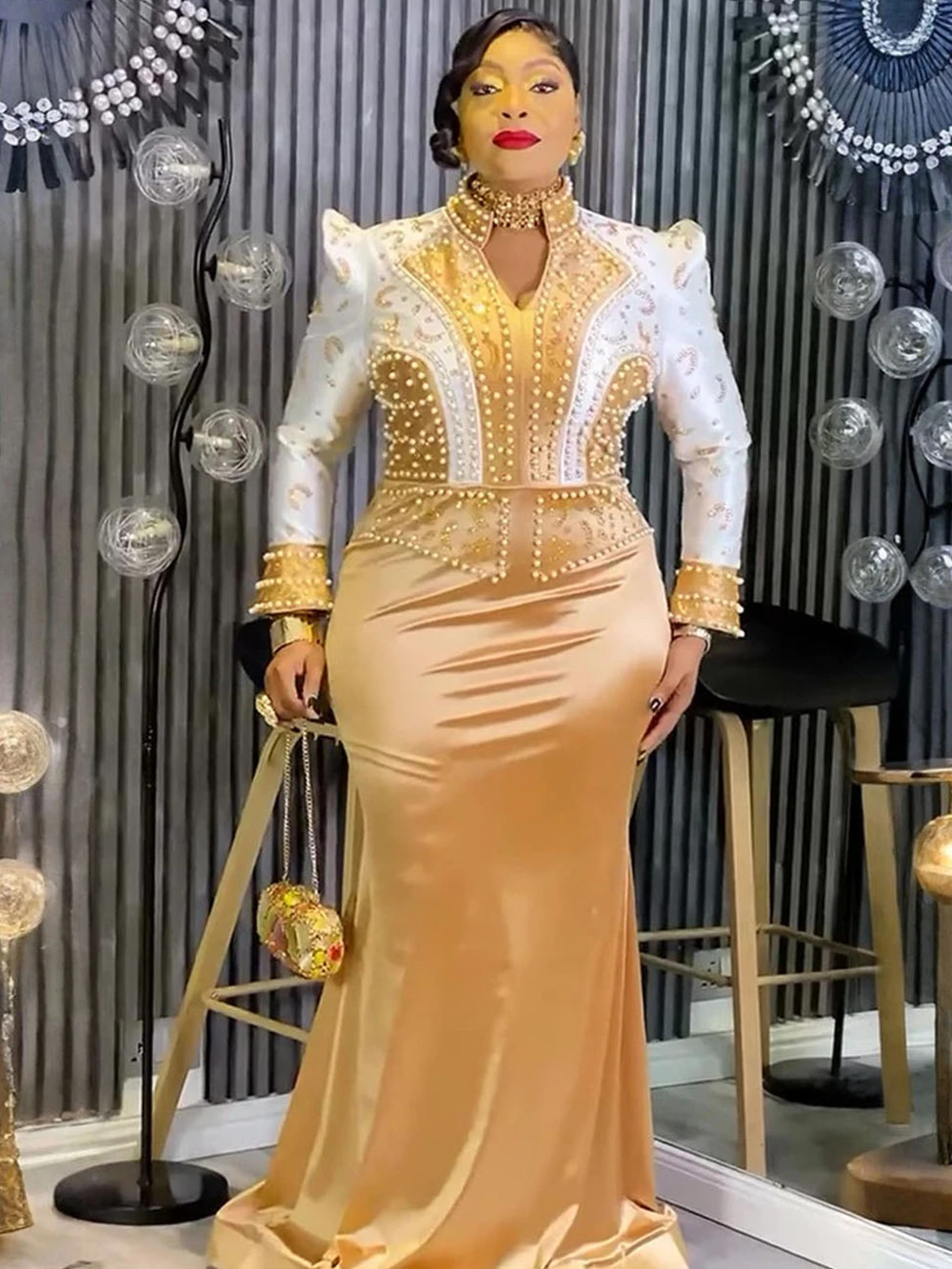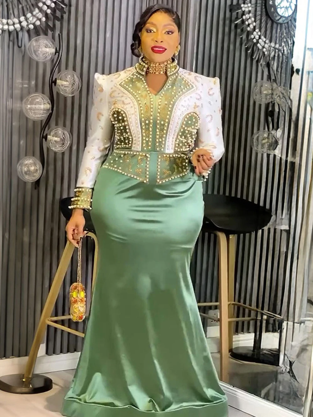 שמלות מסיבה יוקרתיות לנשים עם שרוולים ארוכים שמלת ערב נוצצת בגדי אפריקה יום הולדת חתונה שמלת מקסי שמלת מקסי דובאי קפטנים