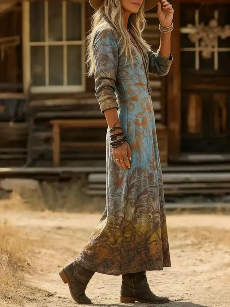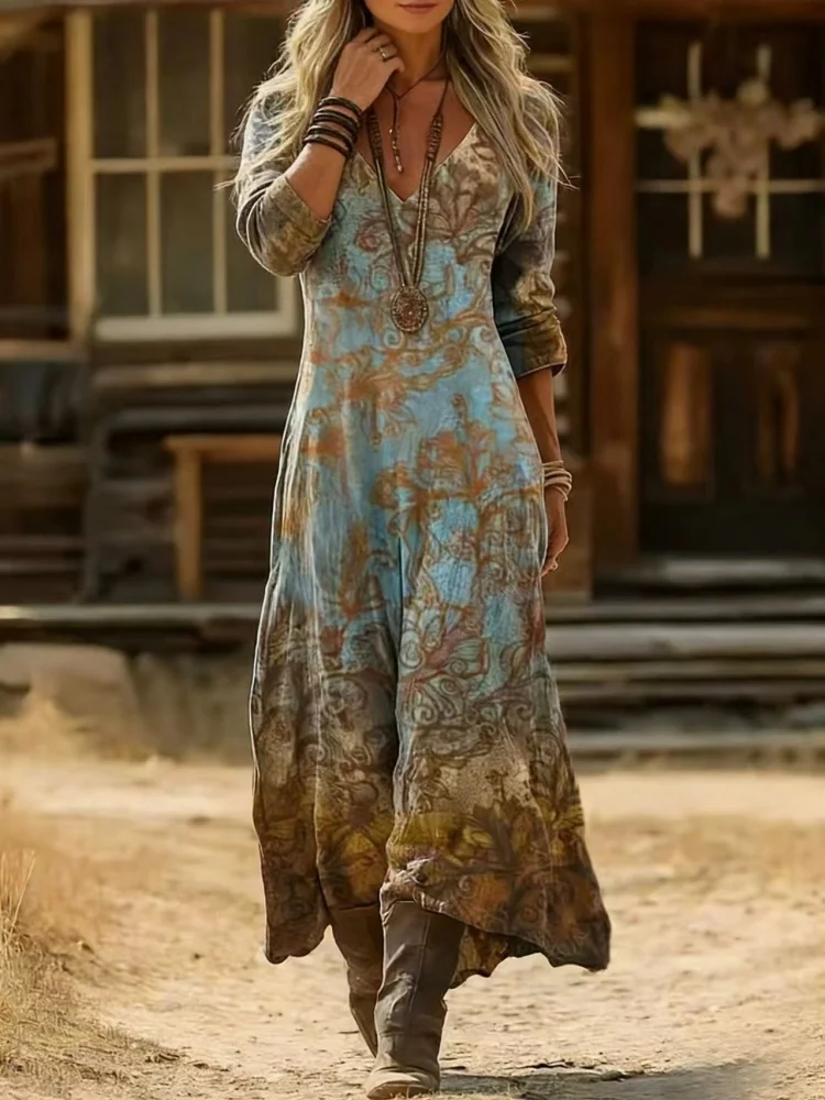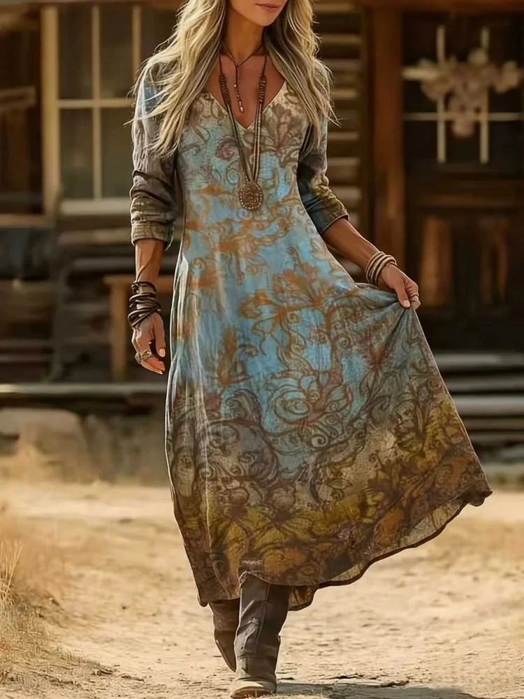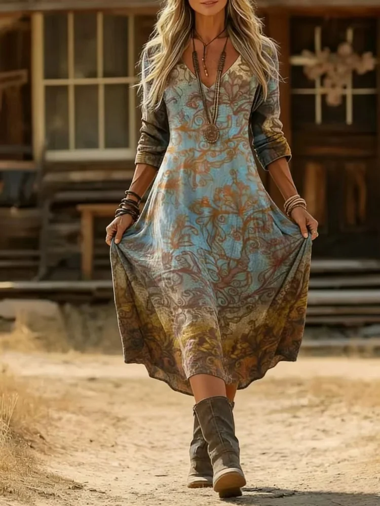 שמלת וינטג' צבעונית עם הדפס פרחוני לנשים - שמלת נשים בסגנון בוהמי, למסיבה, לערב, שמלה יומיומית