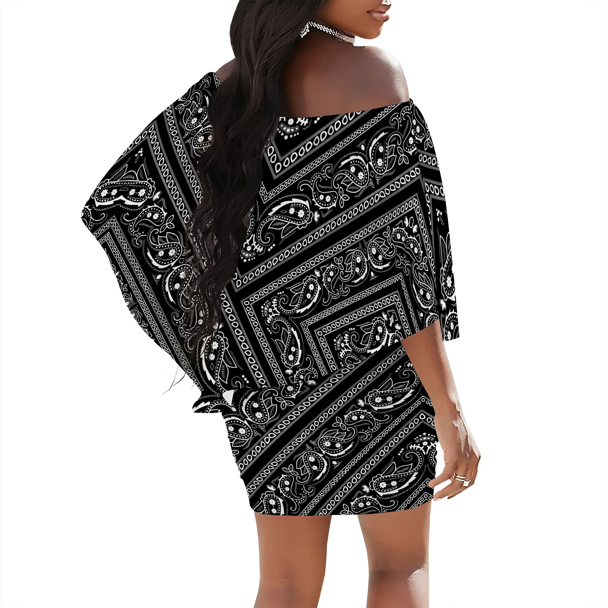שמלת מיני עם כתפיים חשופות והדפס בלוקים גיאומטריים לנשים בסגנון רחוב קז'ואלי