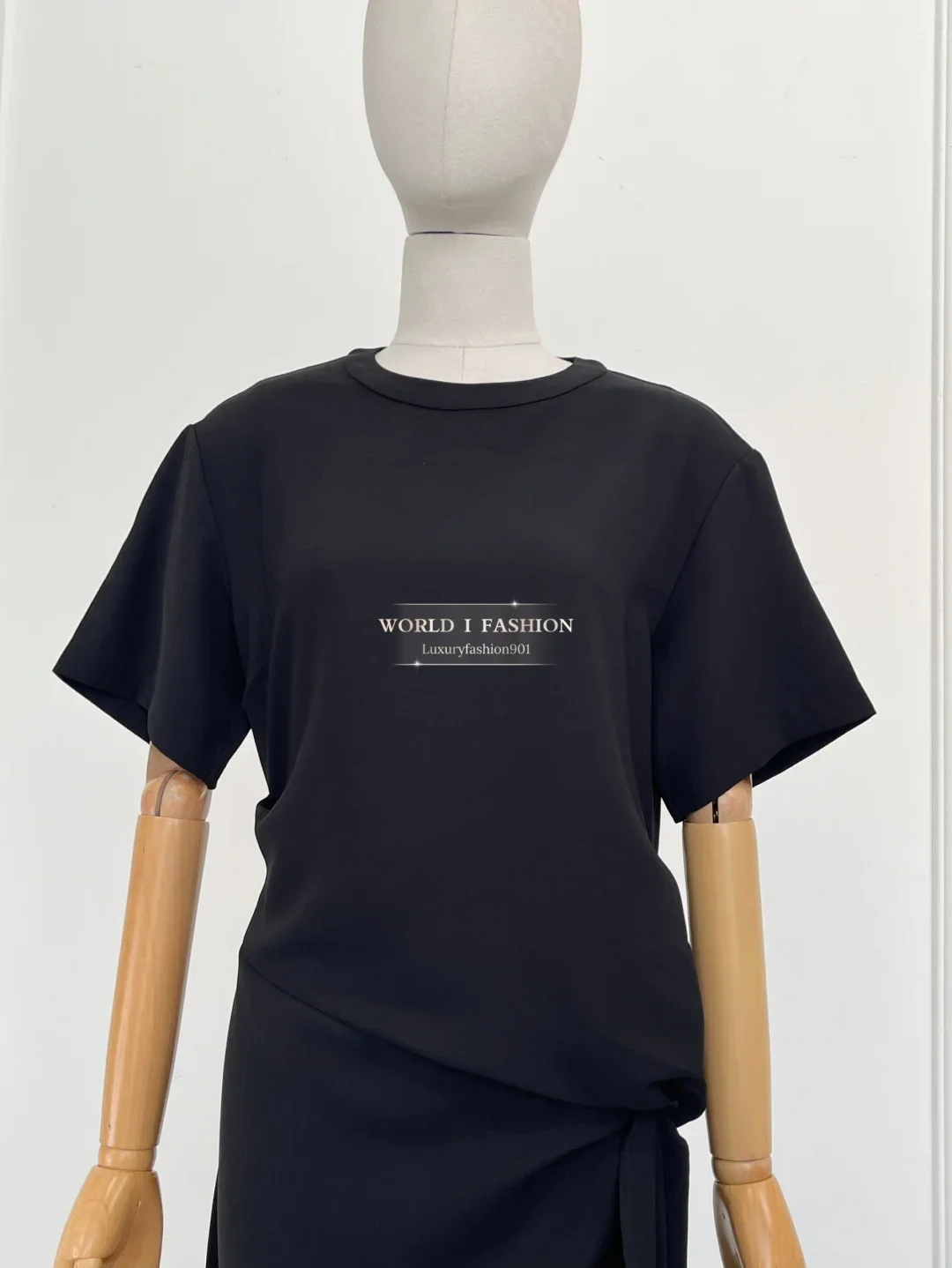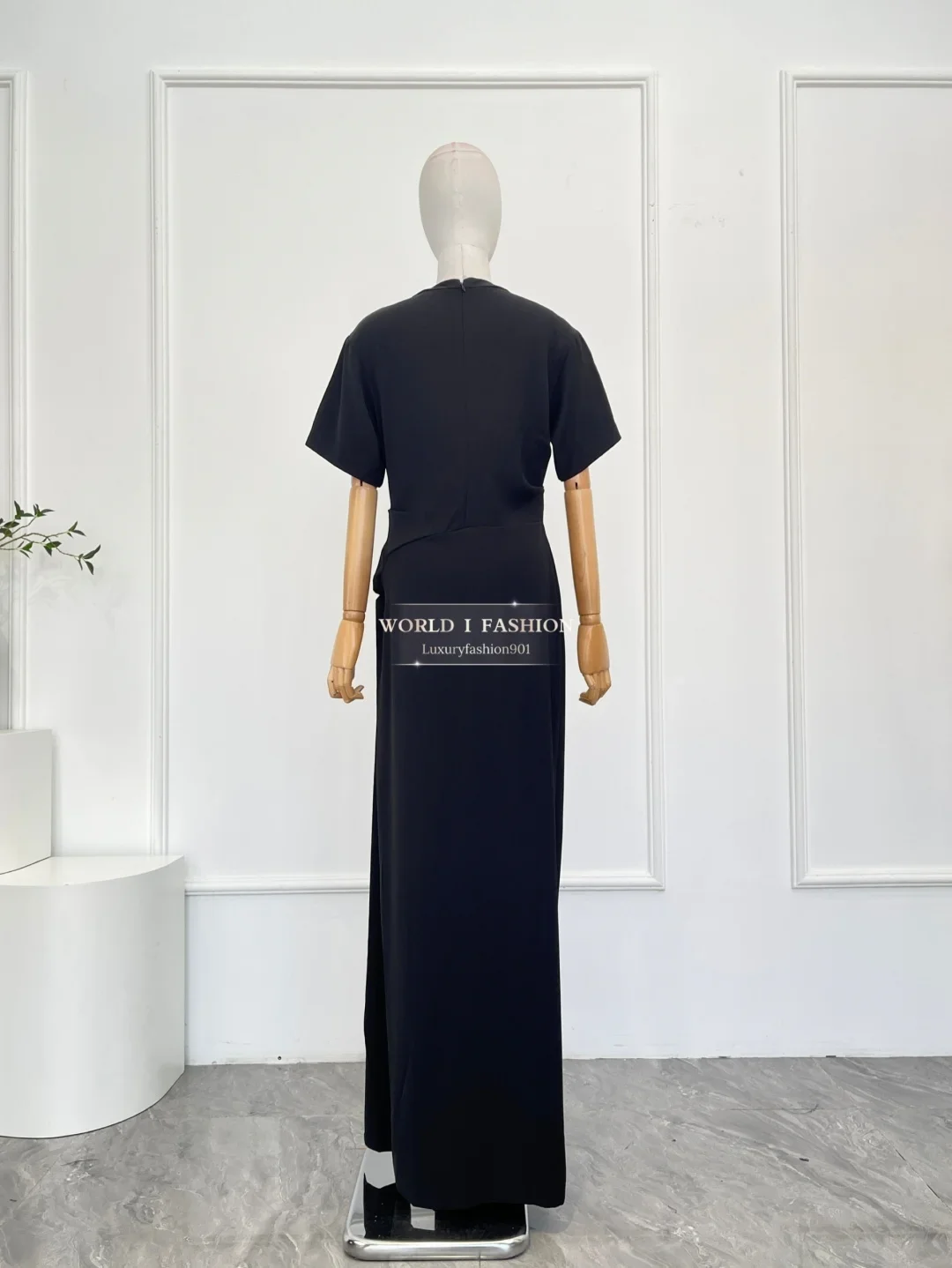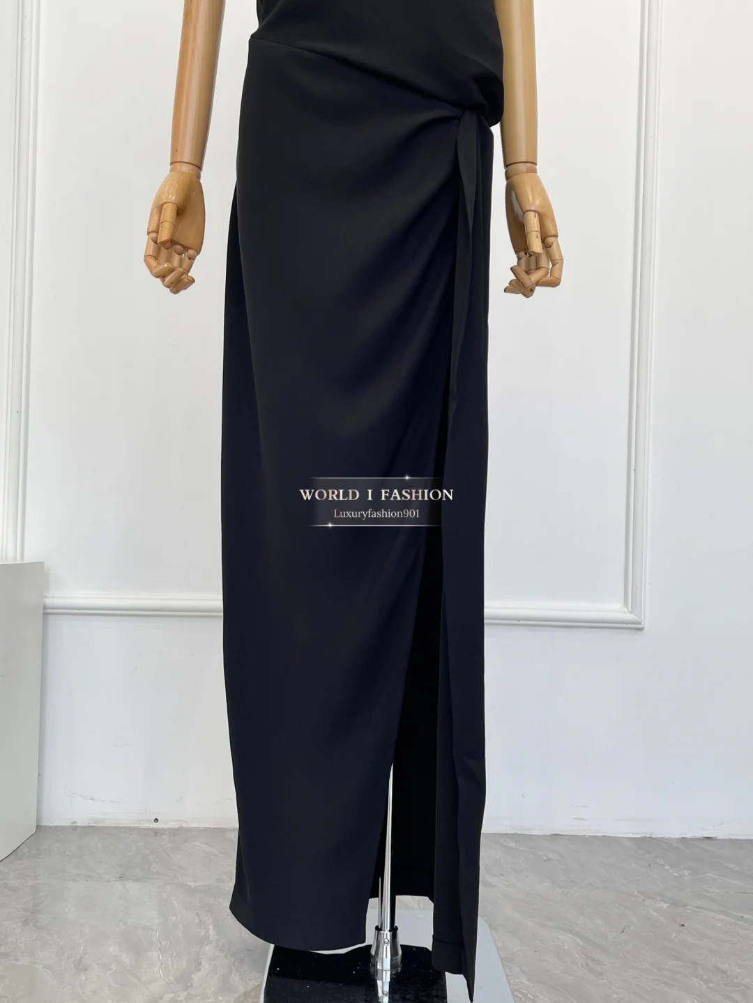 שמלת מקסי קצרה בגזרה גבוהה באיכות גבוהה בצבע שחור/לבן עם שסע