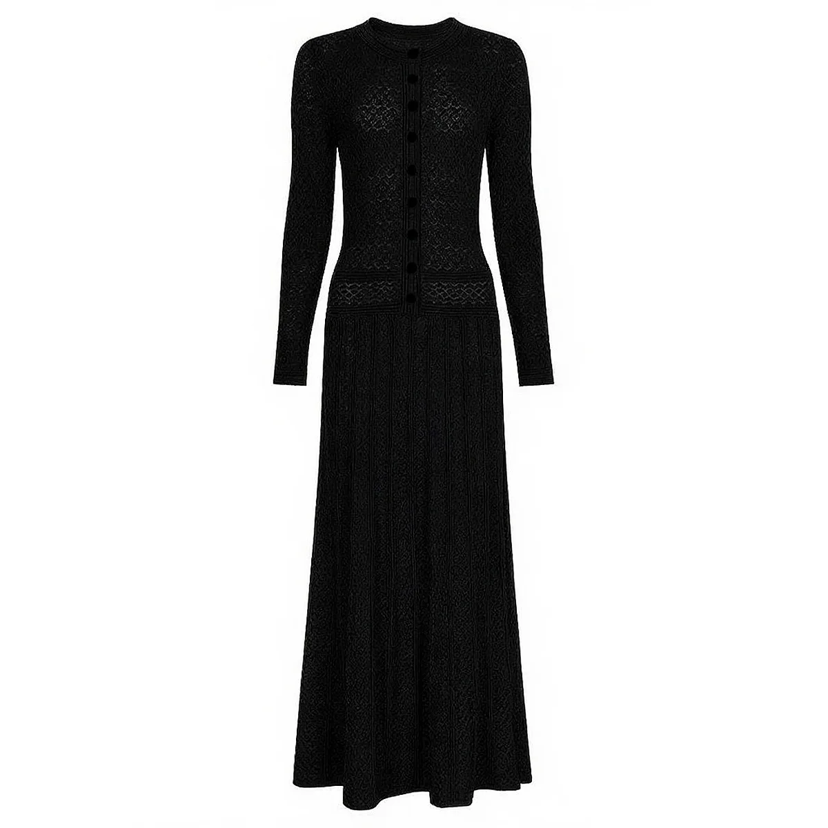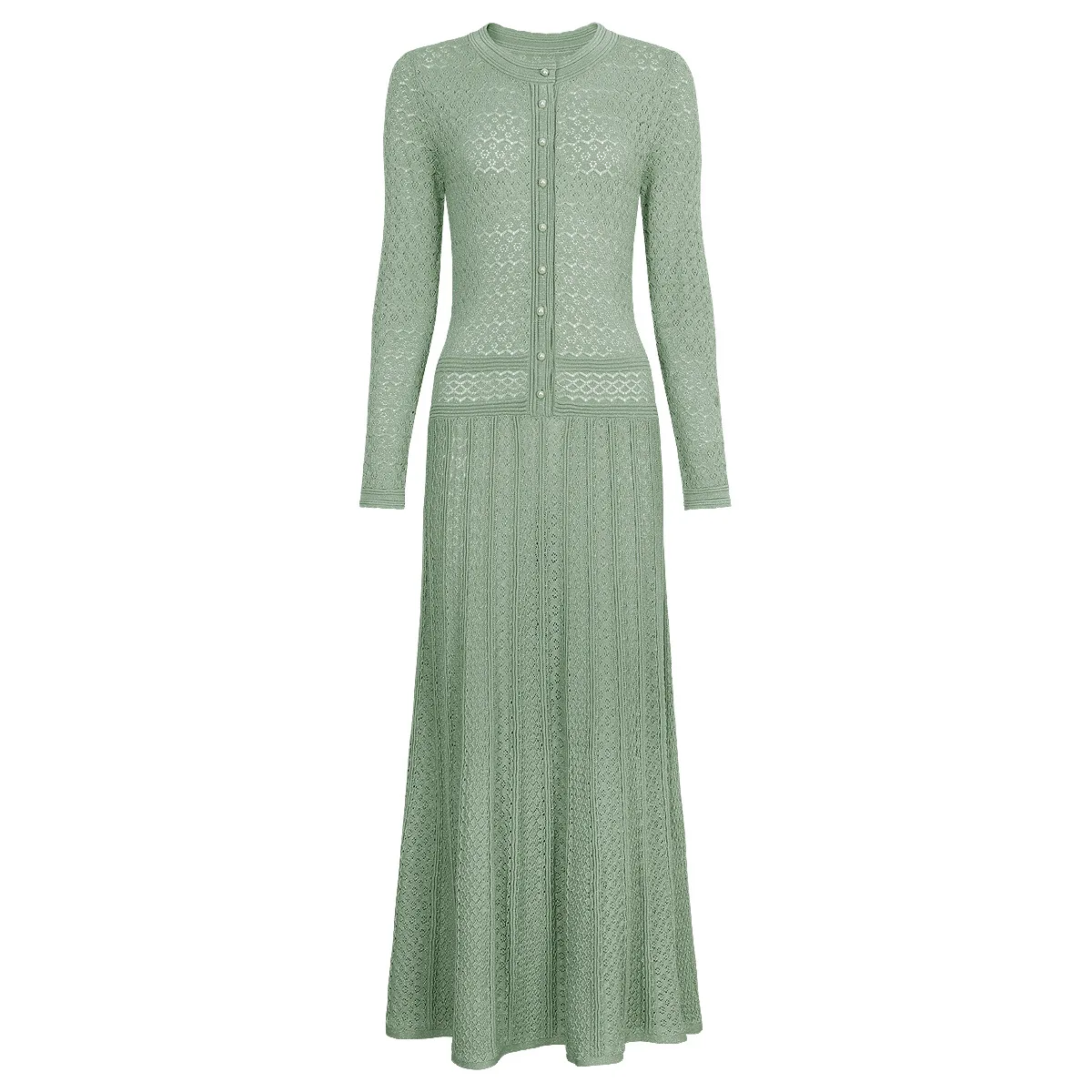 שמלת סריג עם שרוולים ארוכים וצווארון מעוגל לנשים בעיצוב אופנתי חדשני