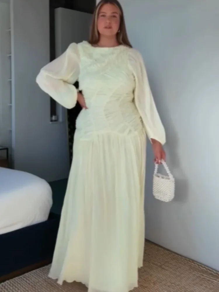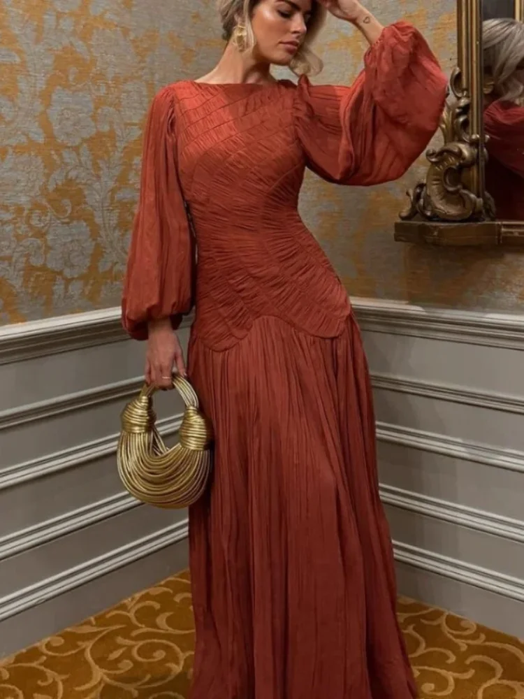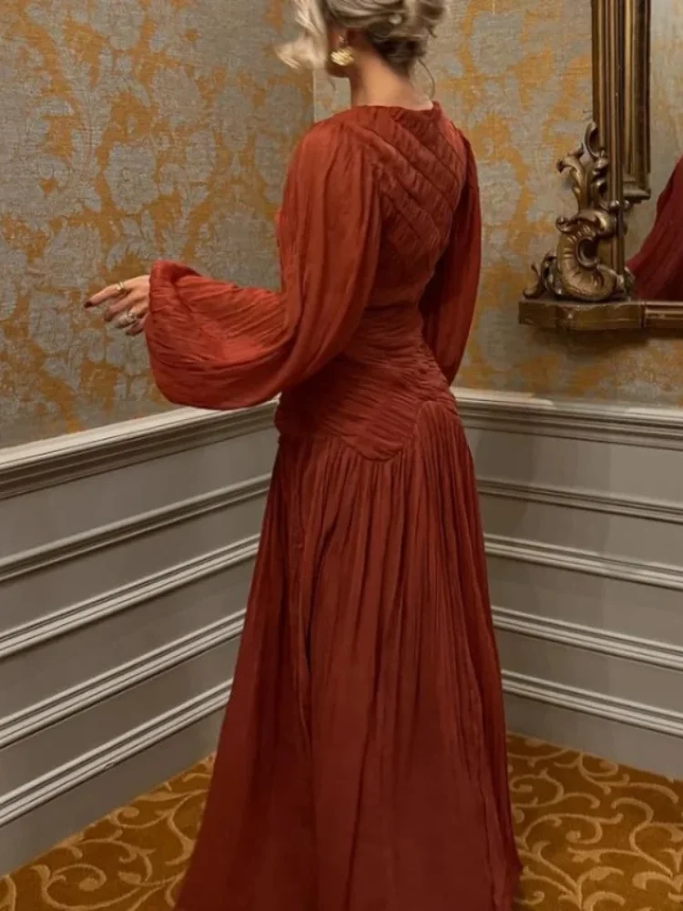 שמלת פאצ'וורק מפוארת ואלגנטית עם מחשוף עגול, שרוולים ארוכים, מתאימה לגוף צר, מותאמת למותן הגבוהה, שמלות לנשים 2025, שמלת ערב למסיבות