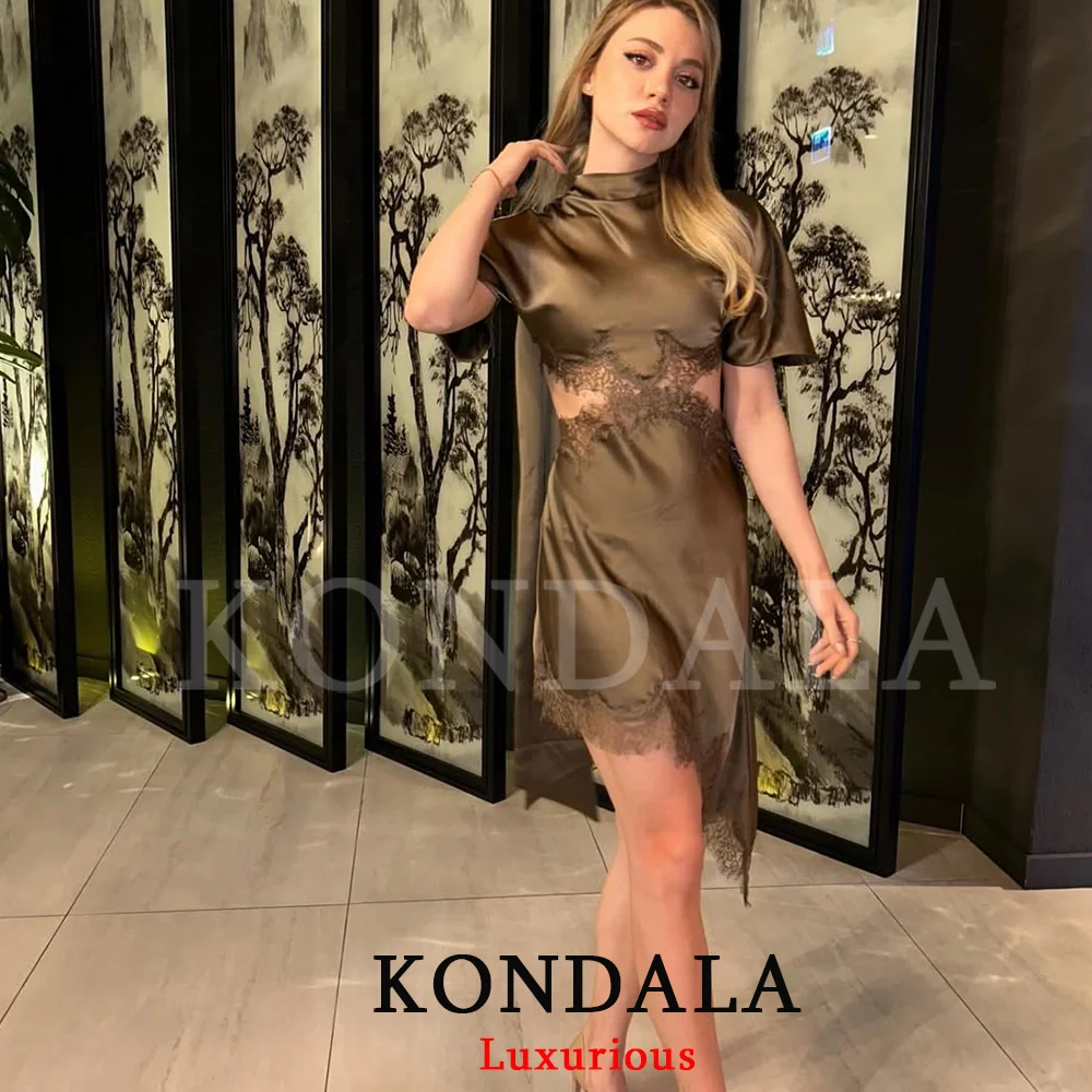 KONDALA אלגנטי סקסי שיק נשים שמלת מיני שמלת צווארון צעיף אסימטרי אופנה 2026 אביב קיץ חג לילה שמלת לילה