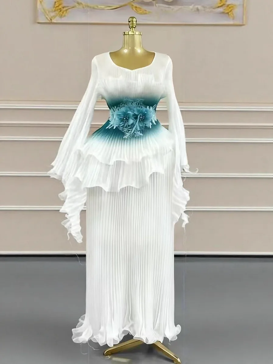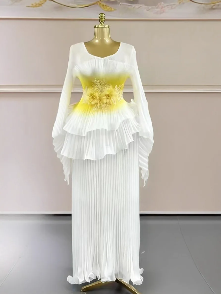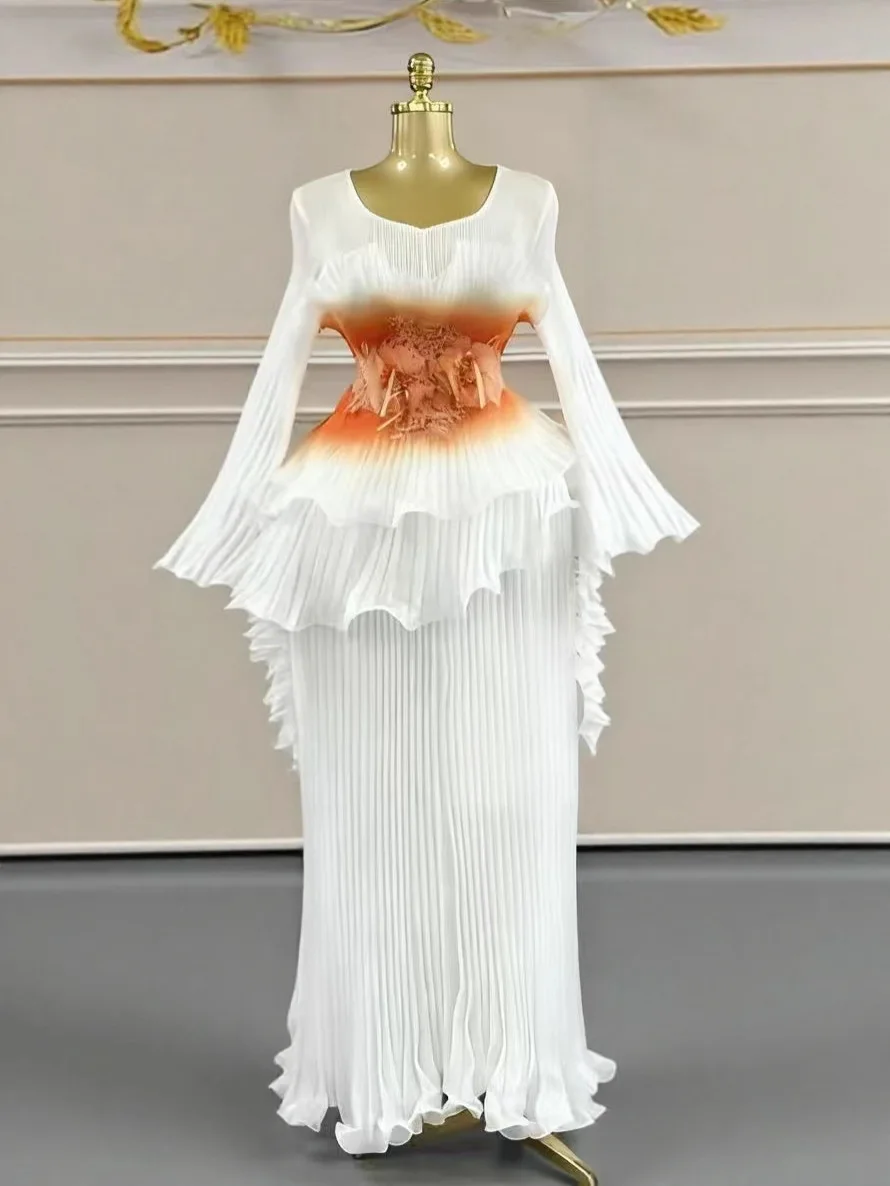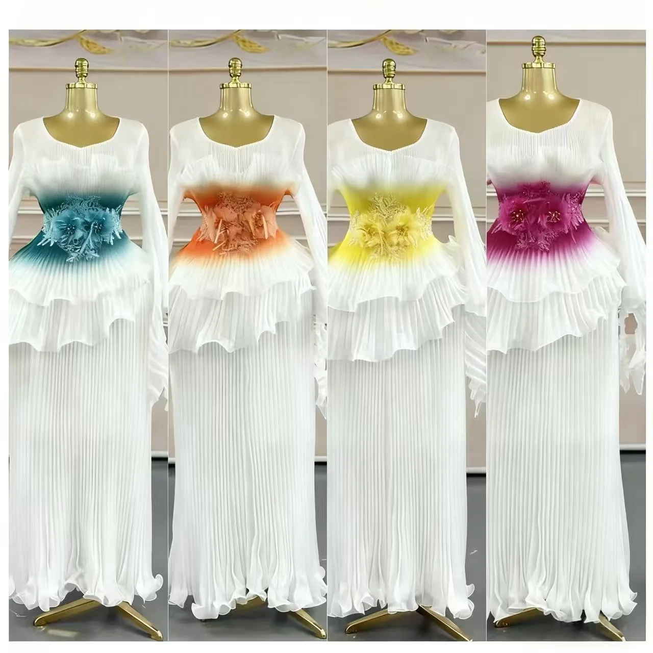 מיאקה פליסה אורגנזה חדשה שינוי הדרגה שמש פליסה חיבור בלתי סדיר גודל גדול סט חצאית נשים חדשה