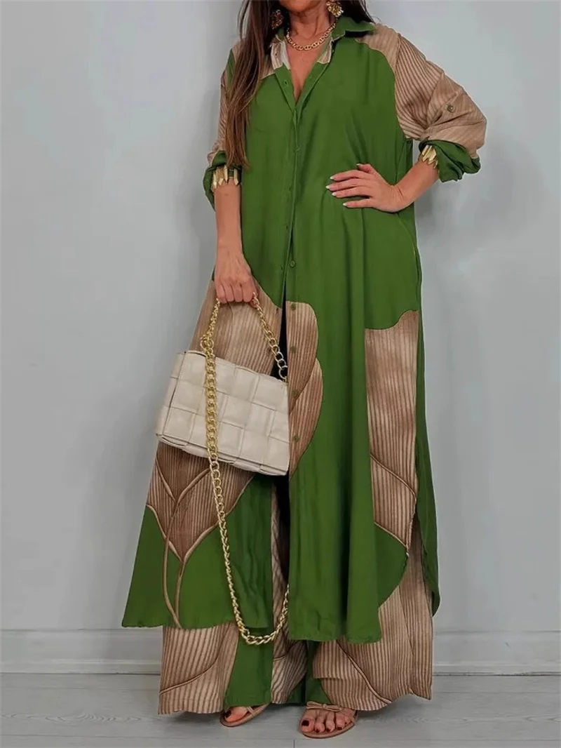 נשים אופנת סתיו קז'ואל צבע חוסם חולצה ומכנסיים שני חלקים נוחים מכנסיים ישרים לנשים 2025