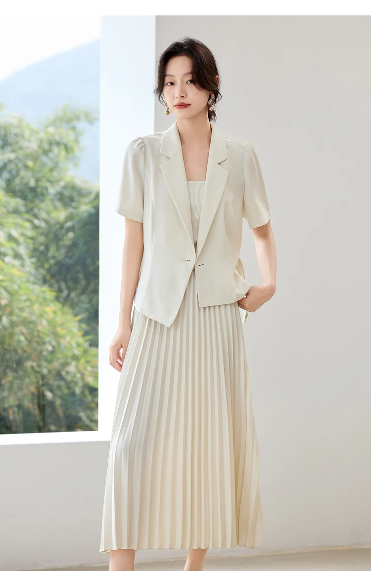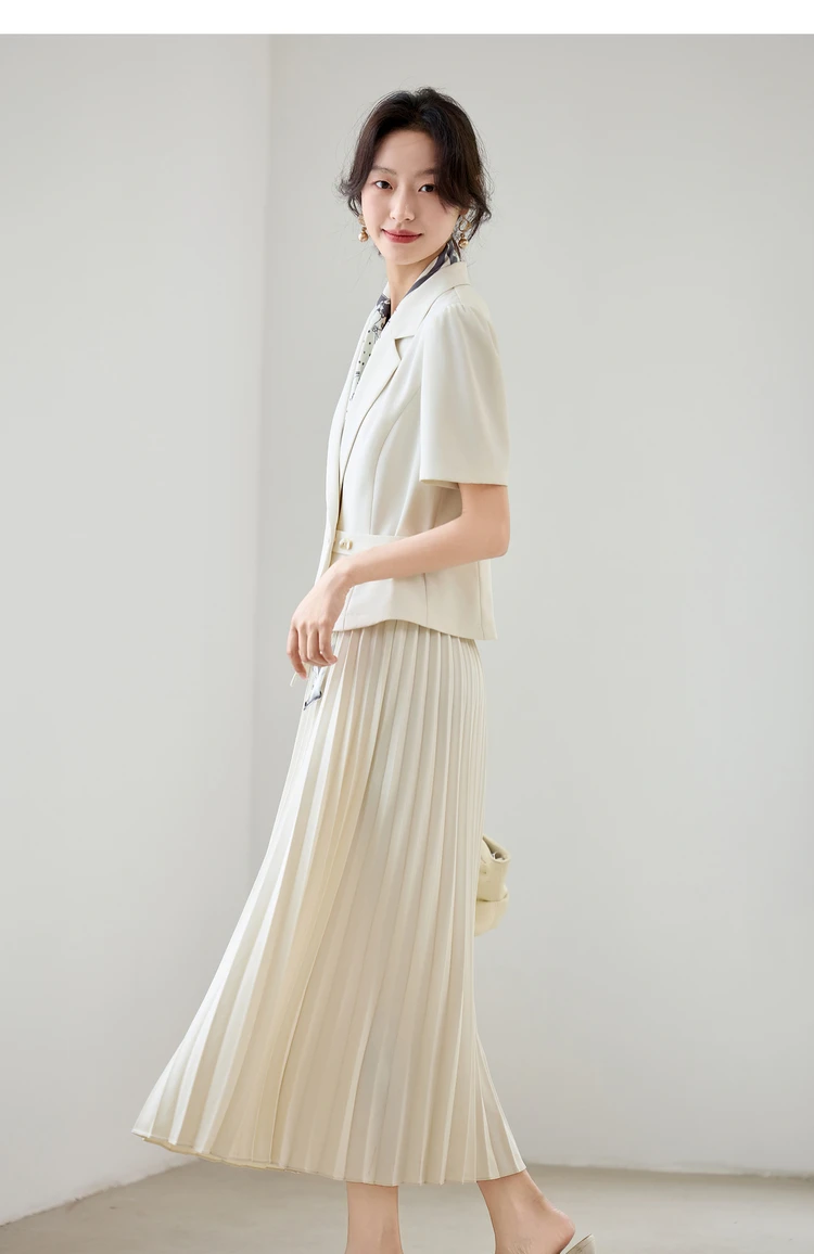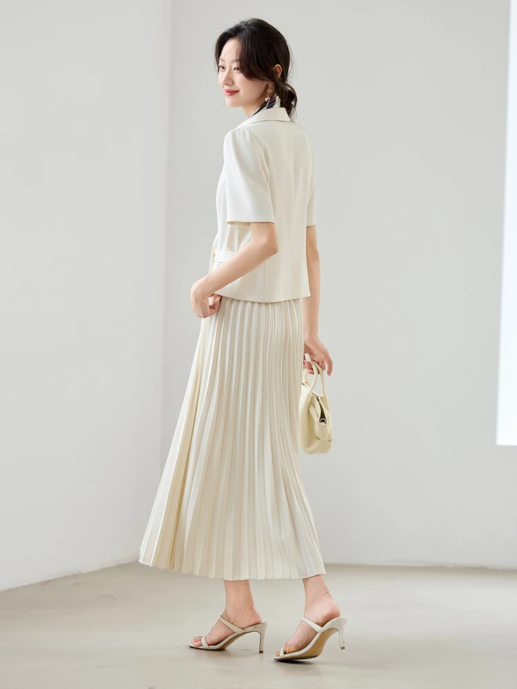 SENTUBILA קיץ 2026 סטים של 2 חלקים תלבושת אישה עם פרט צעיף משי חצאית קפלים בקו A חליפות תואמות חדשות עם שרוולים קצרים Q52ZC0190