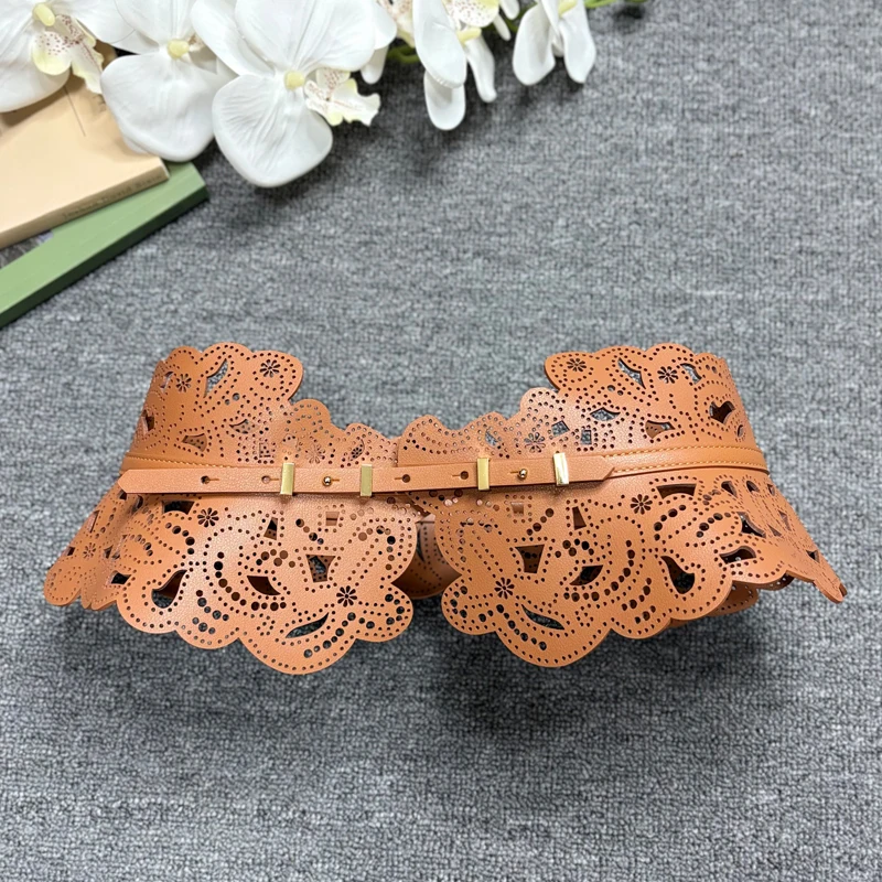 חגורת מותן מחוררת, שמלת חגורה רחבה מעור בוהמית, טוניקה עם קישוט גיאומטרי, חגורה רחבה