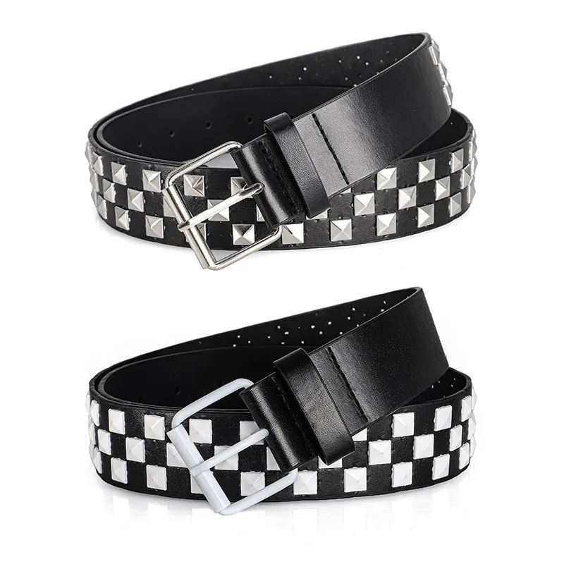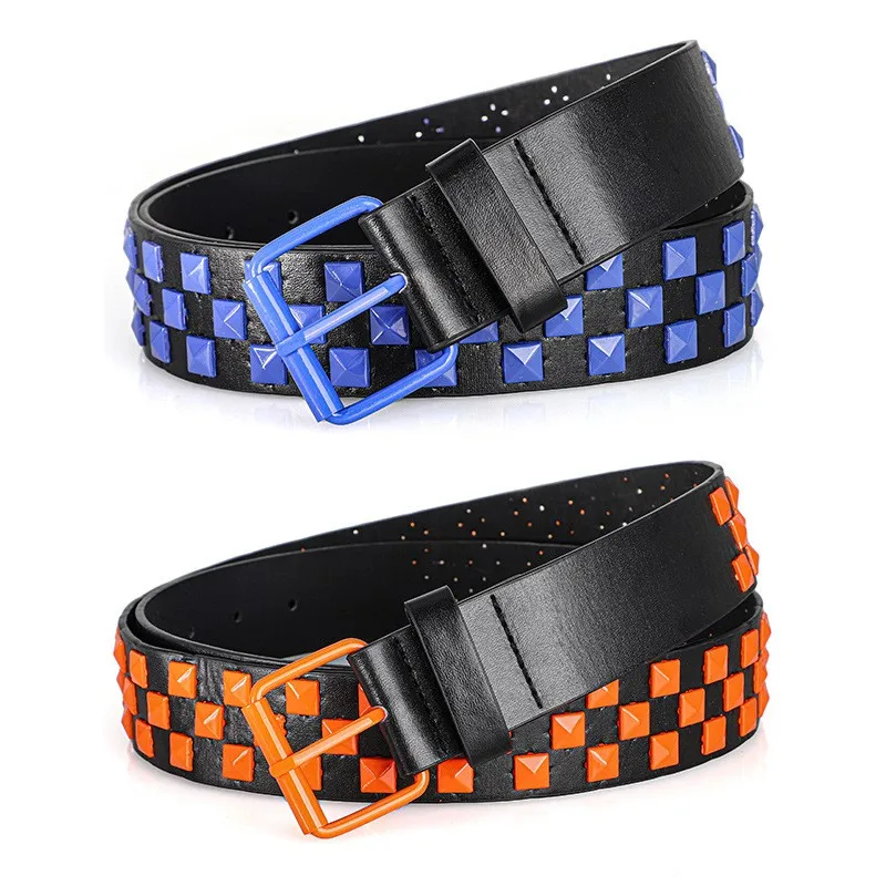חגורת מותן צבעונית לנשים עם ניטים, חגורת מותן בסגנון Y2K יוניסקס, חגורת מותן בסגנון פאנק רוק אירופאי ואמריקאי לג'ינס