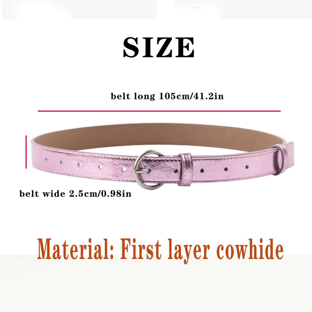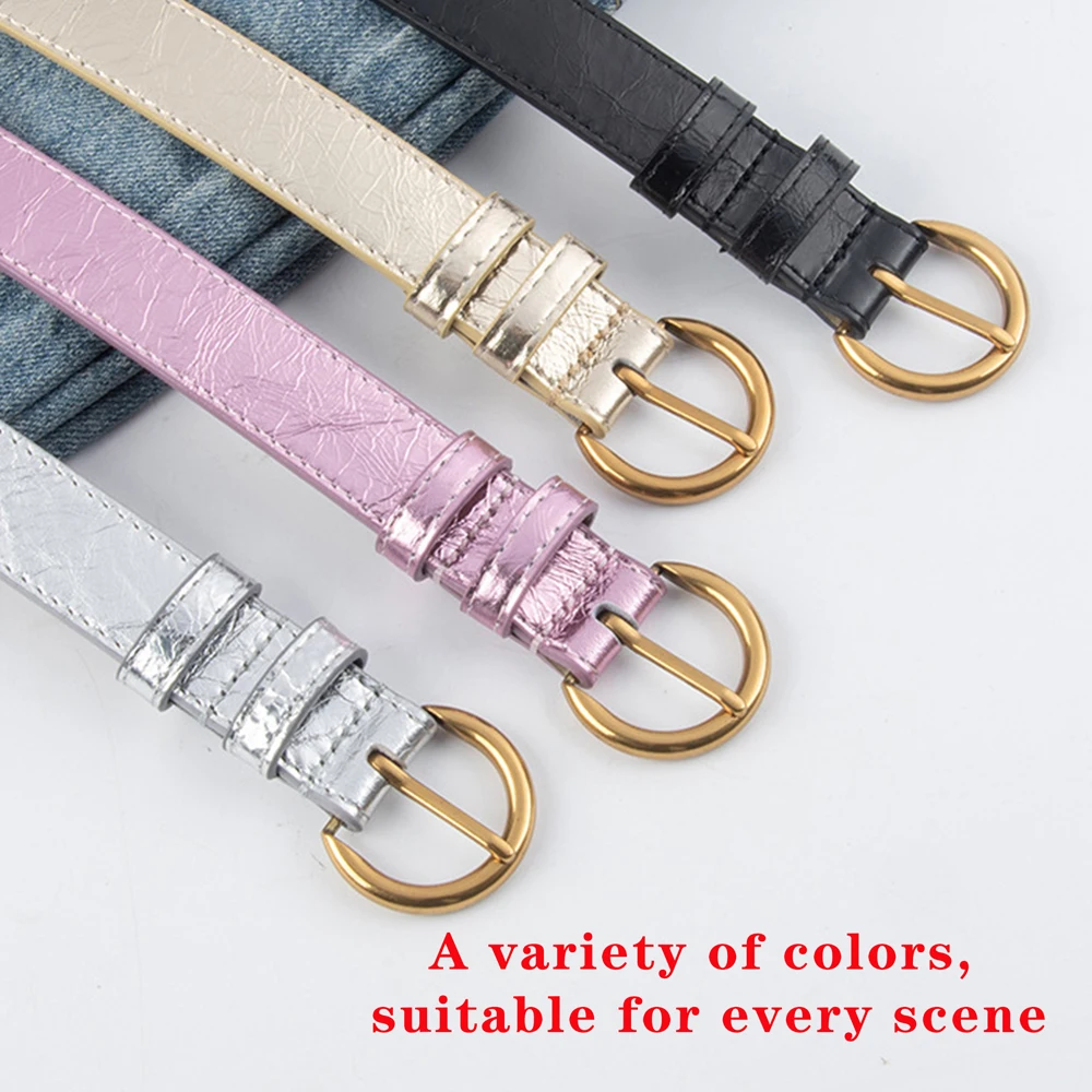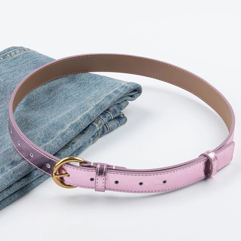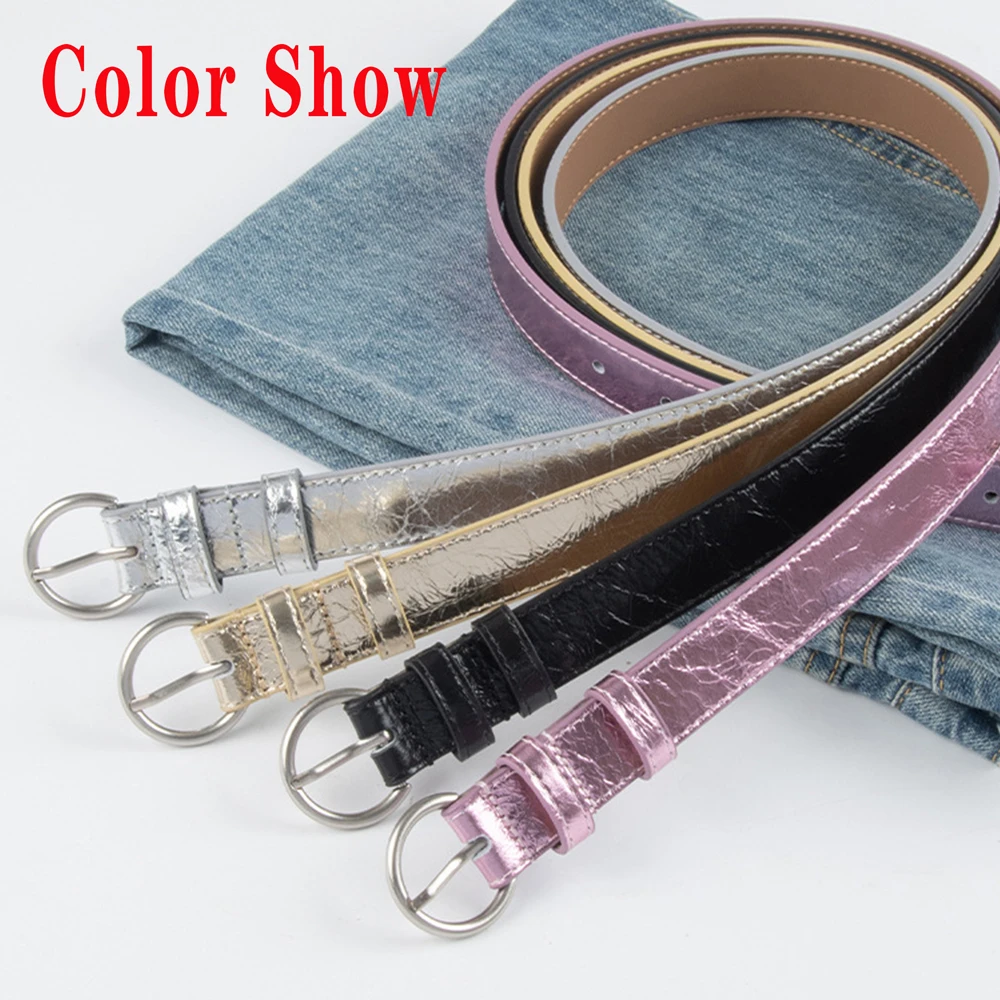 חגורת עור אמיתית לנשים בצבע כסף וזהב עם אבזם פין, רצועת אופנה מבריקה וקישוט רטרו לג'ינסים