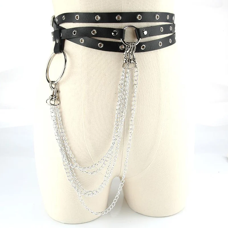 נקבה עור חצאית חגורות פאנק גותי רוק לרתום מותניים מתכת שרשרת גוף שעבוד חגורה חלולה אביזרי עבור גברת