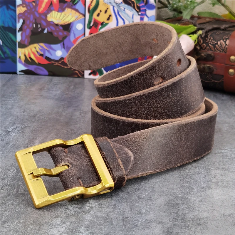 פליז מוצק חגורת אבזם רטרו סגנון גברים של חגורת עבה עור חגורת גברים Ceinture חגורת לגברים ארוך מותניים בציר חגורת גברים MBT0133