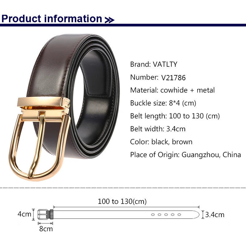 VATLTY הרשמי אותנטי חדש עור חגורות לגברים זהב פשוט מתכת אבזם טבעי עור פרה גברים של חגורת מזדמן עסקי חגורה