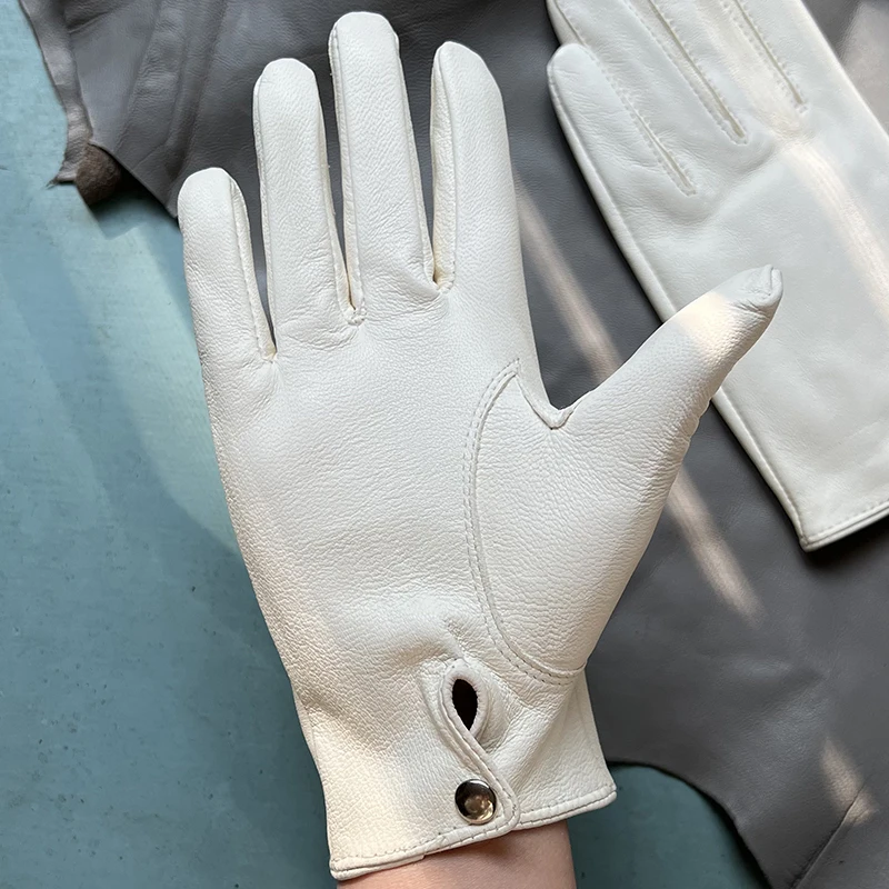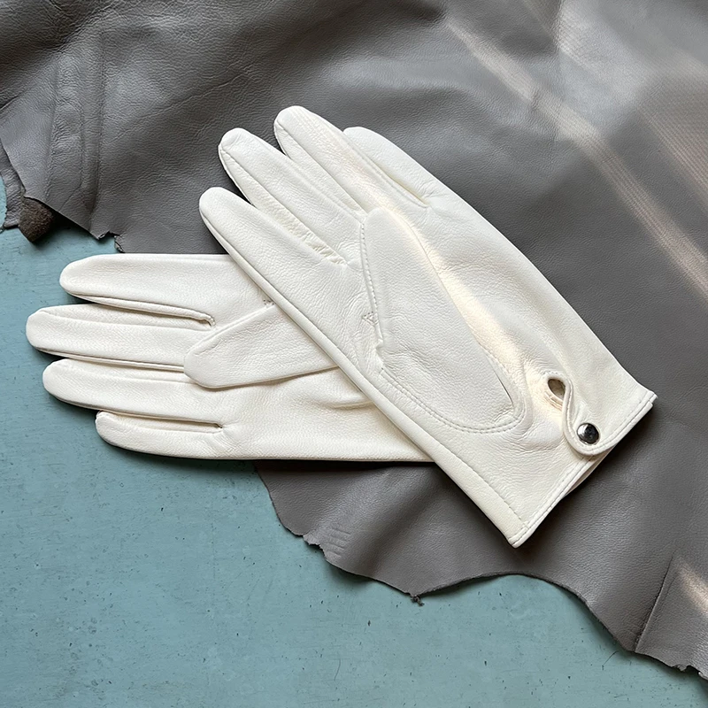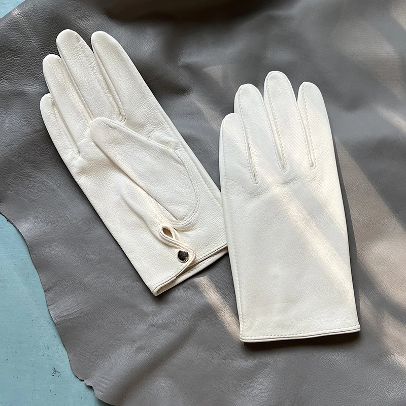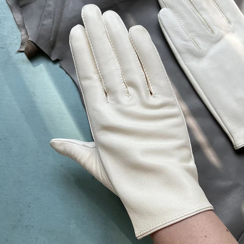 כפפות עור כבשים לבנות לנשים כפפות עור קצרות ללא בטנה כפפות עור חד-שכבתיות כפפות לבנות לגברים כפפות לבנות עם חמש אצבעות