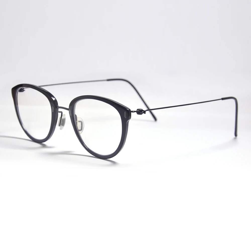 מסגרות משקפיים עגולות מטיטניום טהור לנשים, עשויות מאצטט ידני, קלות במיוחד, מסננת קרני כחול למחשב