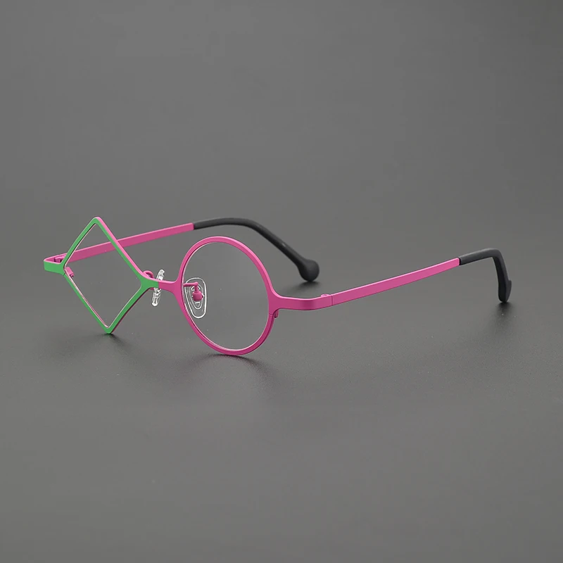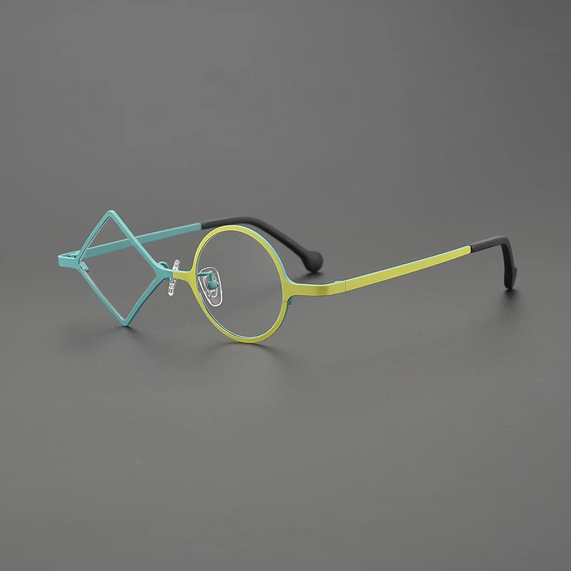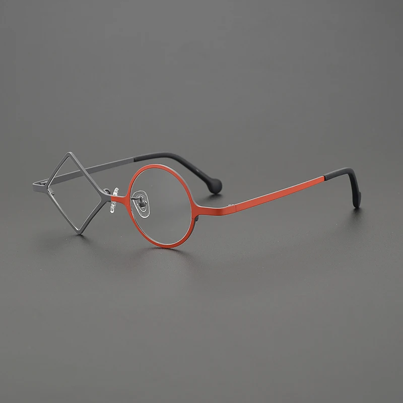מסגרת כוסות טיטניום טהורה רטרו לגברים ונשים, רומבית אחת ועגולה אחת, מסגרת כוסות קלה במיוחד, מעצב אישי