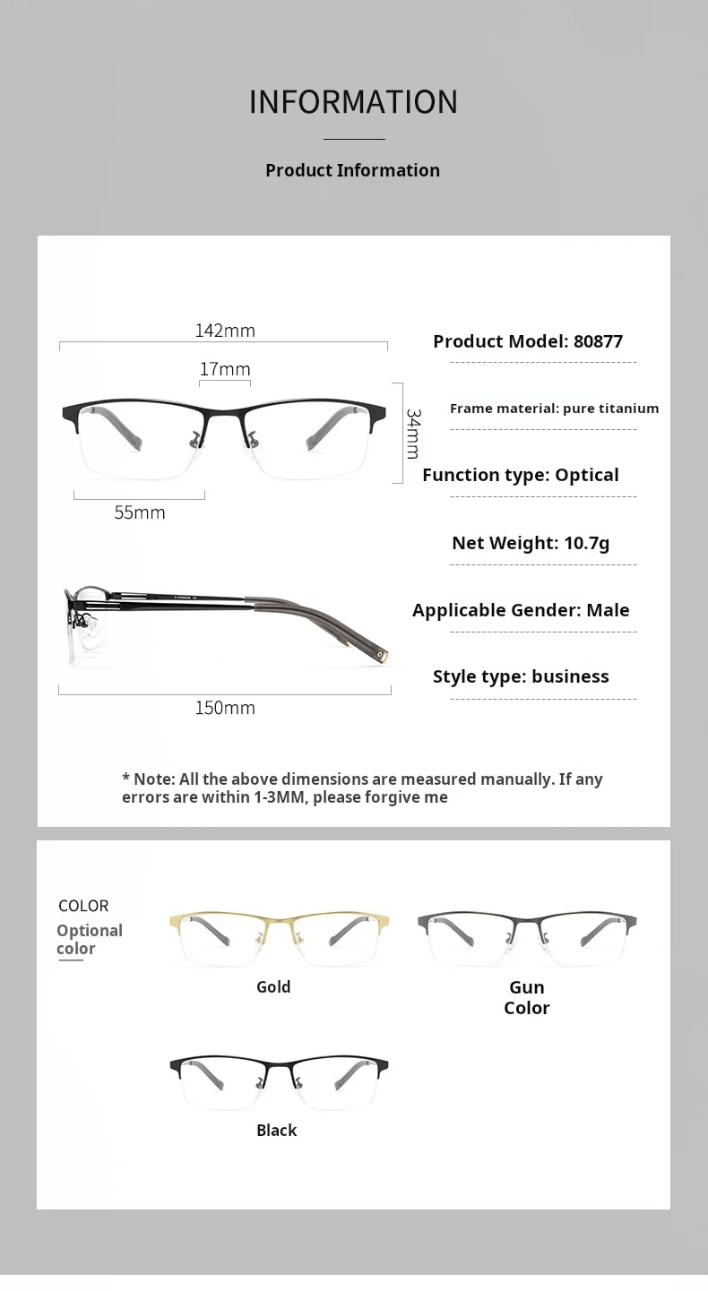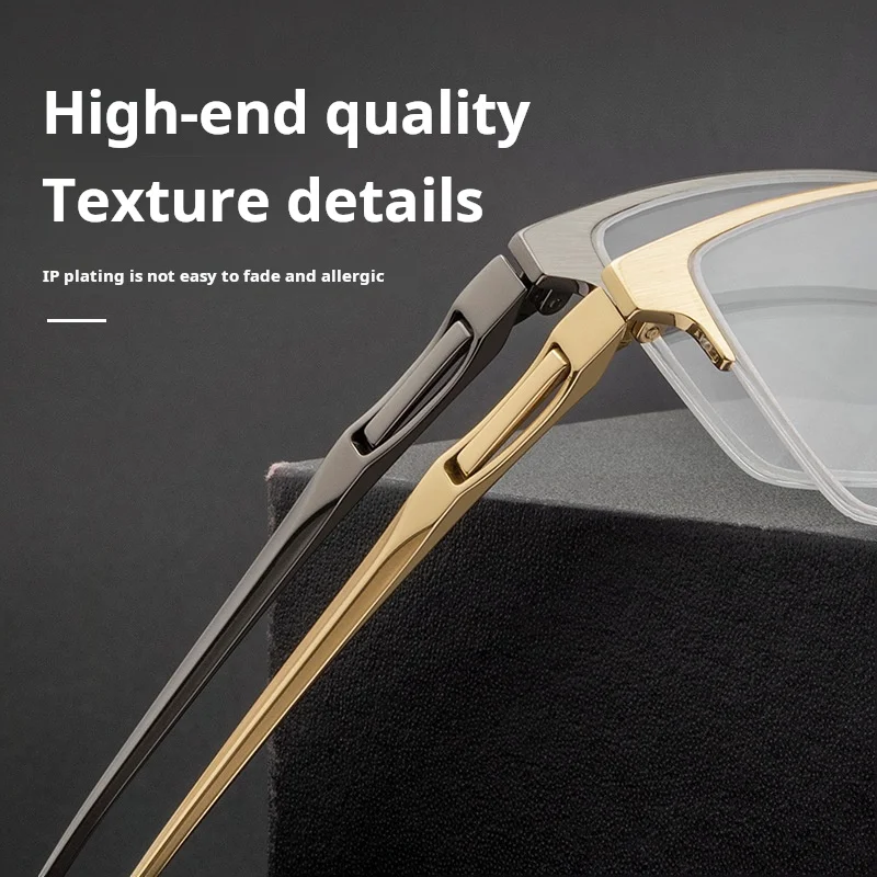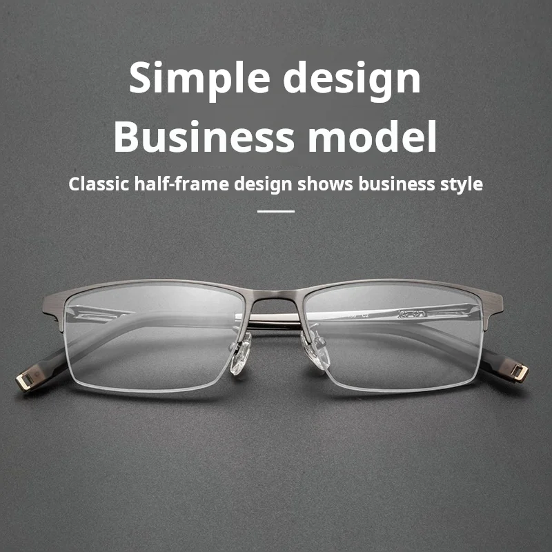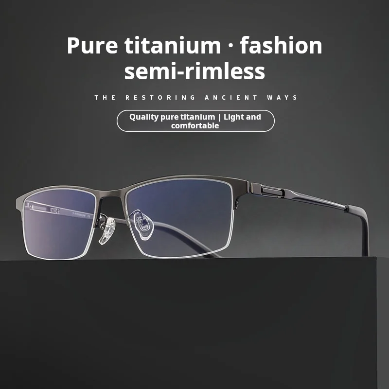 מסגרת משקפיים חצי מסגרת עסקית לגברים מטיטניום טהור באיכות גבוהה TFTB, קלת משקל, אופטית, מותאמת אישית, 142 מילימטר