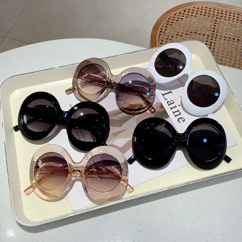 Kammpt בגודל מוגזים משקפי שמש עגולים 2024 אופנה נשים הבציר גוונים חיצוני אופנתי עיצוב מותג משקפי שמש שחור
