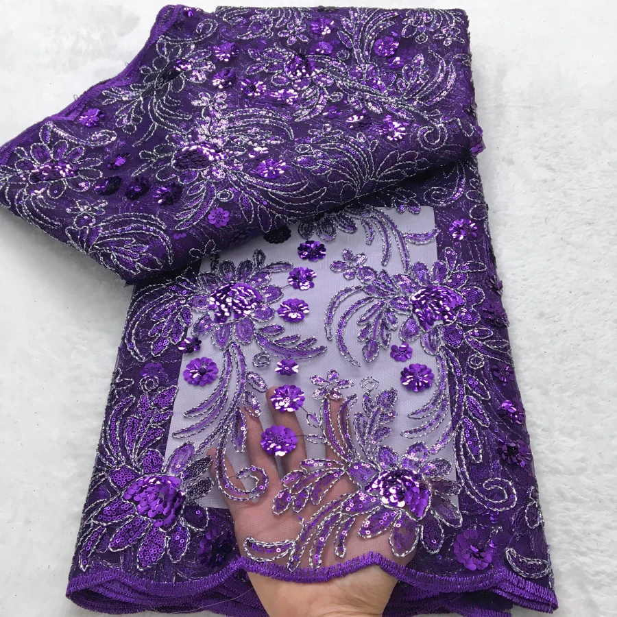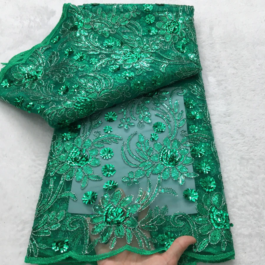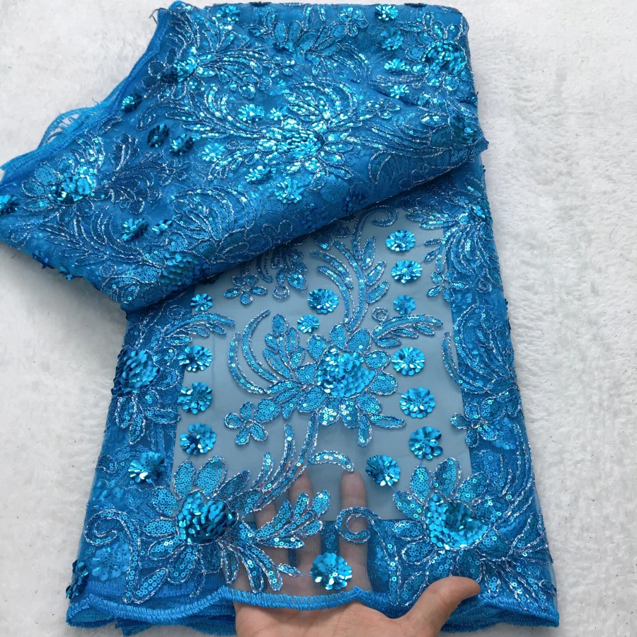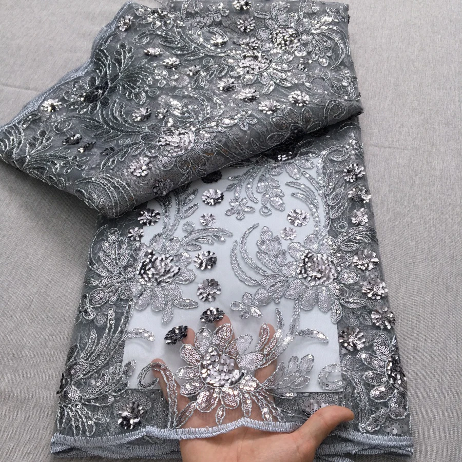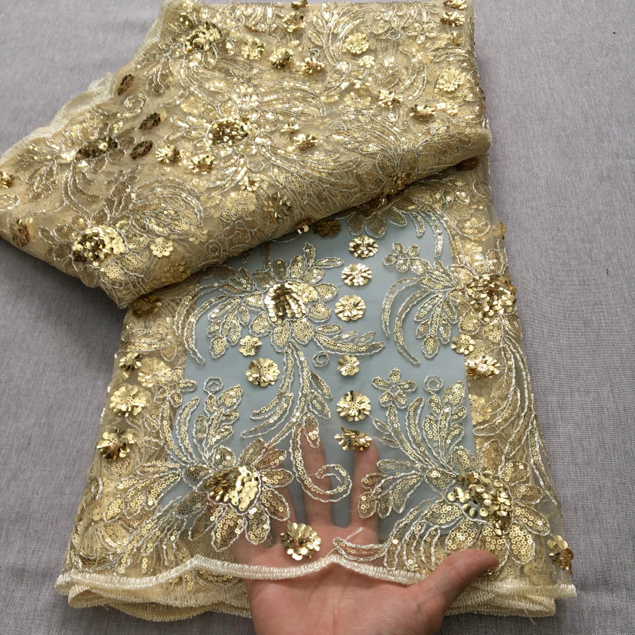 בד רשת ניגרי מעוצב בעבודת יד עם פנינים מפוארות, בד תחרה אפריקאי לנשים בסגנון אופנתי 5Y לשמלת כלה