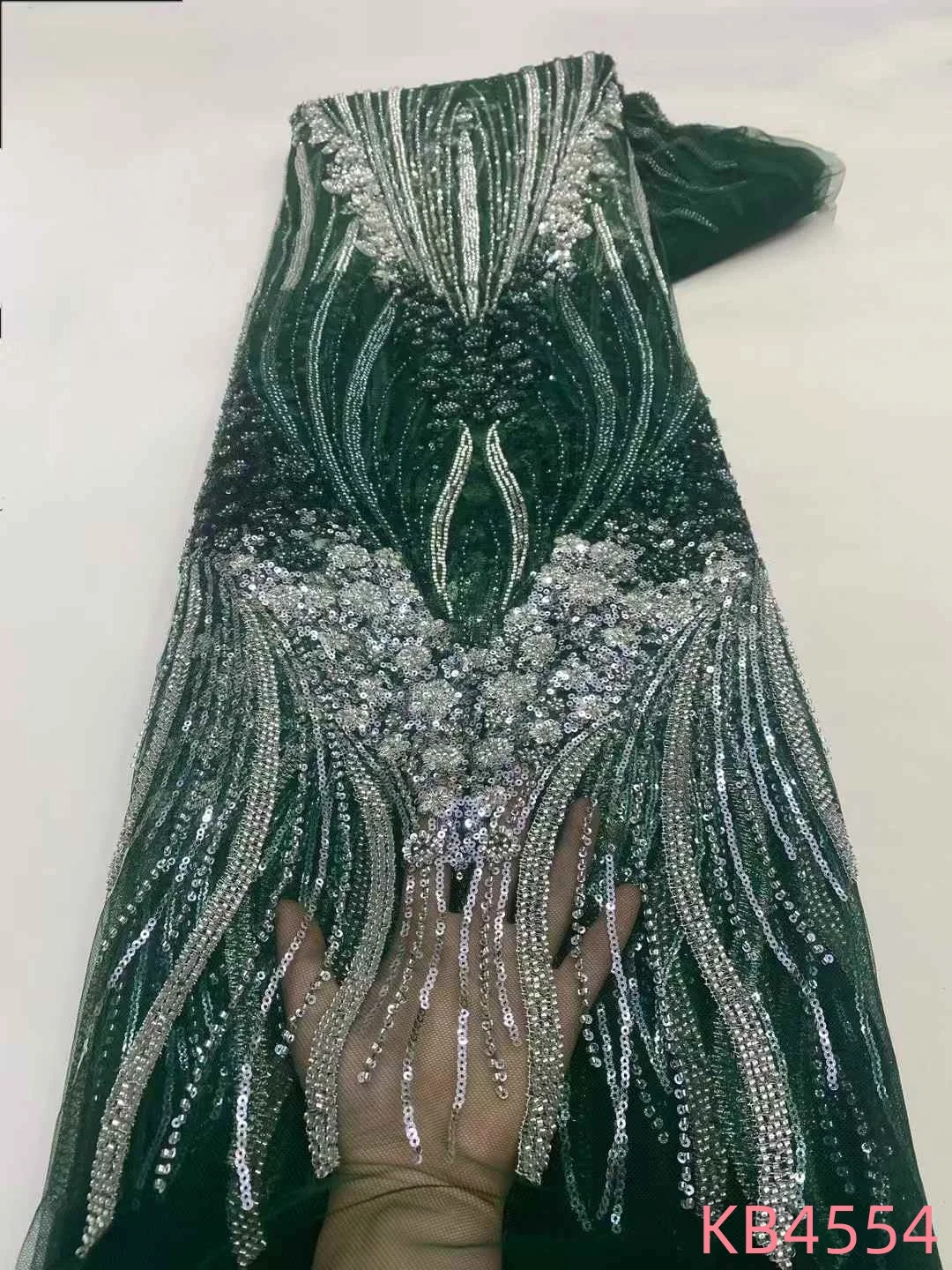 בד תחרה אפריקאי מפואר לנשים שמלות ערב צרפתיות עם רשת כתומה משוררת בד תחרה עם חרוזים לבד KB4554