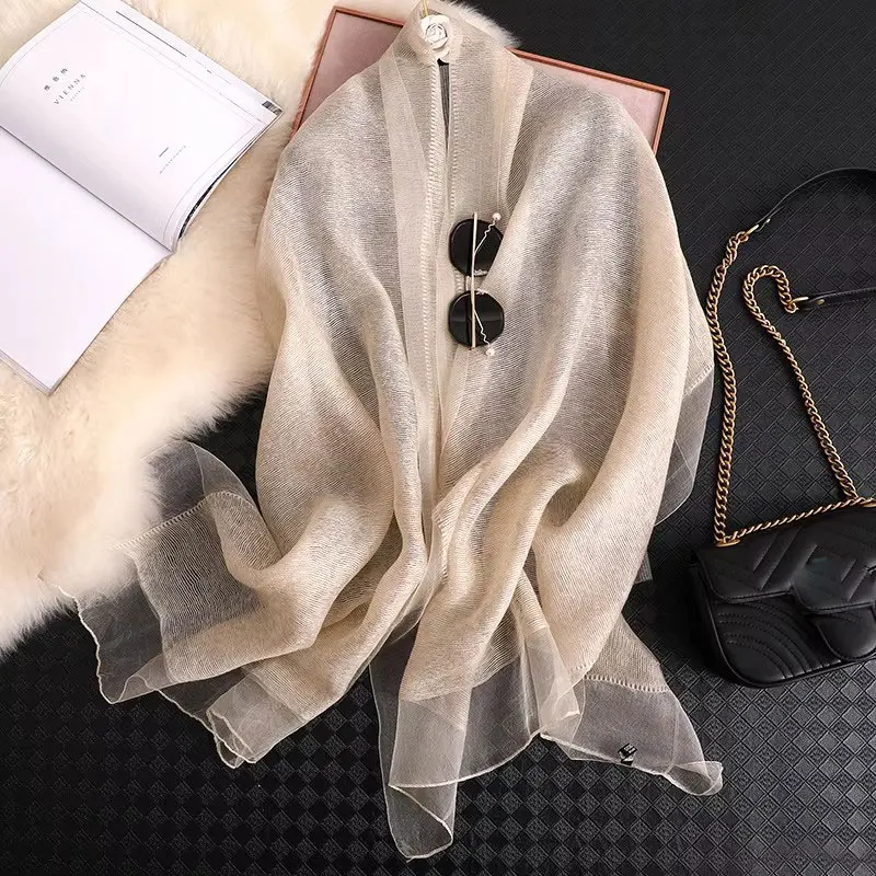 מותג 2026 צעיף משי לנשים נקבה מוצק פאולרד פאשמינה צעיפים ועטיפה בגודל גדול מגבת חוף סקווים בנדנה חجاب מוסלמי