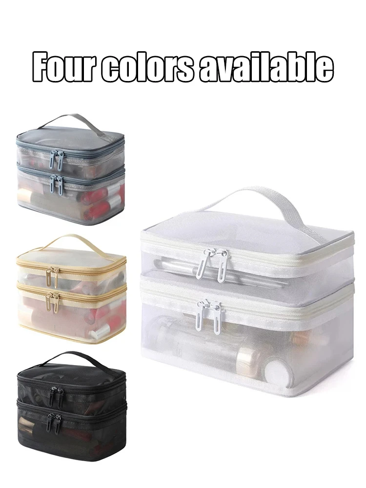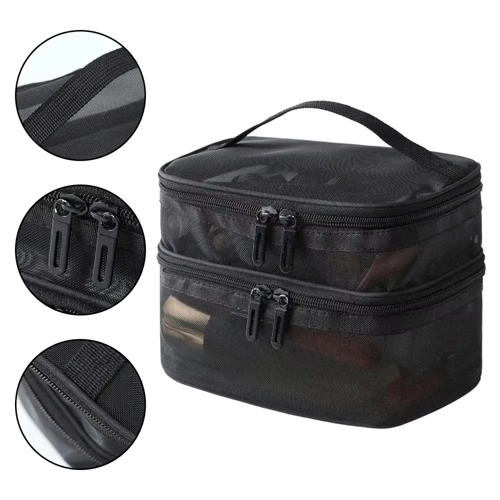 תיק אחסון רשת דו-שכבתי, פתחים כפולים לקיבולת גדולה, חומר רך עמיד בפני עיוותים, שקוף וברור.