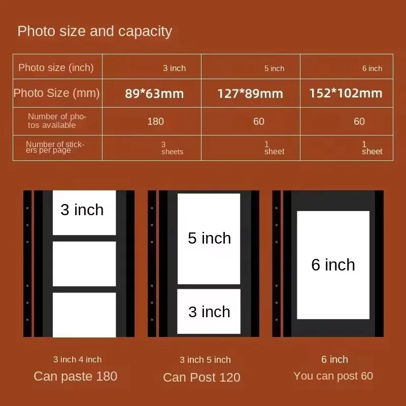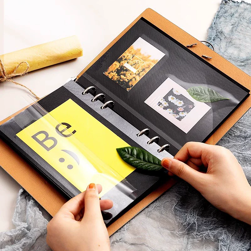 אלבום תמונות אלבומי תמונות דביקים בעצמם אלבומי תמונות עם 6 חורים אלבומי עשה זאת בעצמך אלבומי אחסון תמונות נייד עמיד בפני אבק אלבום תמונות מתנה כיסוי PU