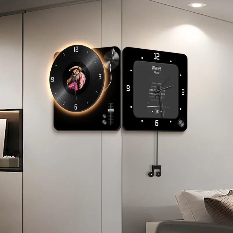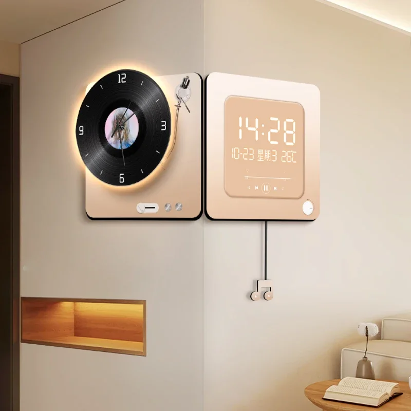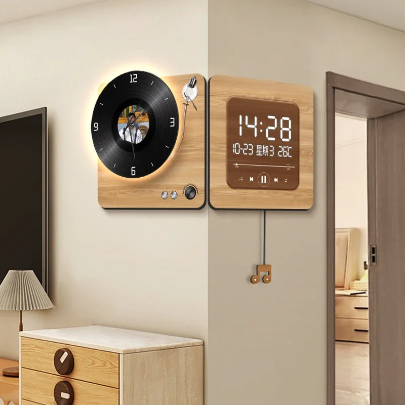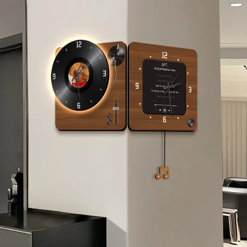שעון פינת תקליט ויניל, שעון קיר דו צדדי וינטאג', עיצוב מואר ברמה גבוהה, פינת זמן רטרו, 2024