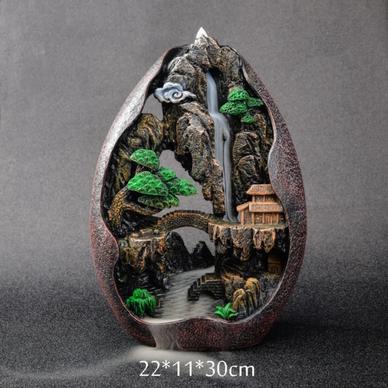 1 יחידה, מפל עשן עם זרימה אחורית, מבער קיטור יצירתי לעיצוב הבית, מחזיק קיטור נייד מרצועת רזין הרים נהר אמנות ידנית