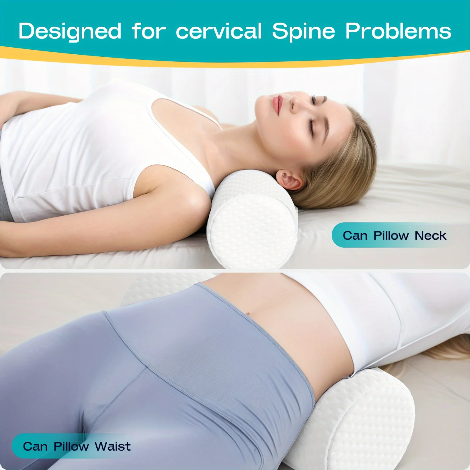 1 pcs עגול כרית גלגול צוואר עם כיסוי נשלף לרחוץ ארגונומית כדי להתאים את הצוואר הראש לגב והרגליים
